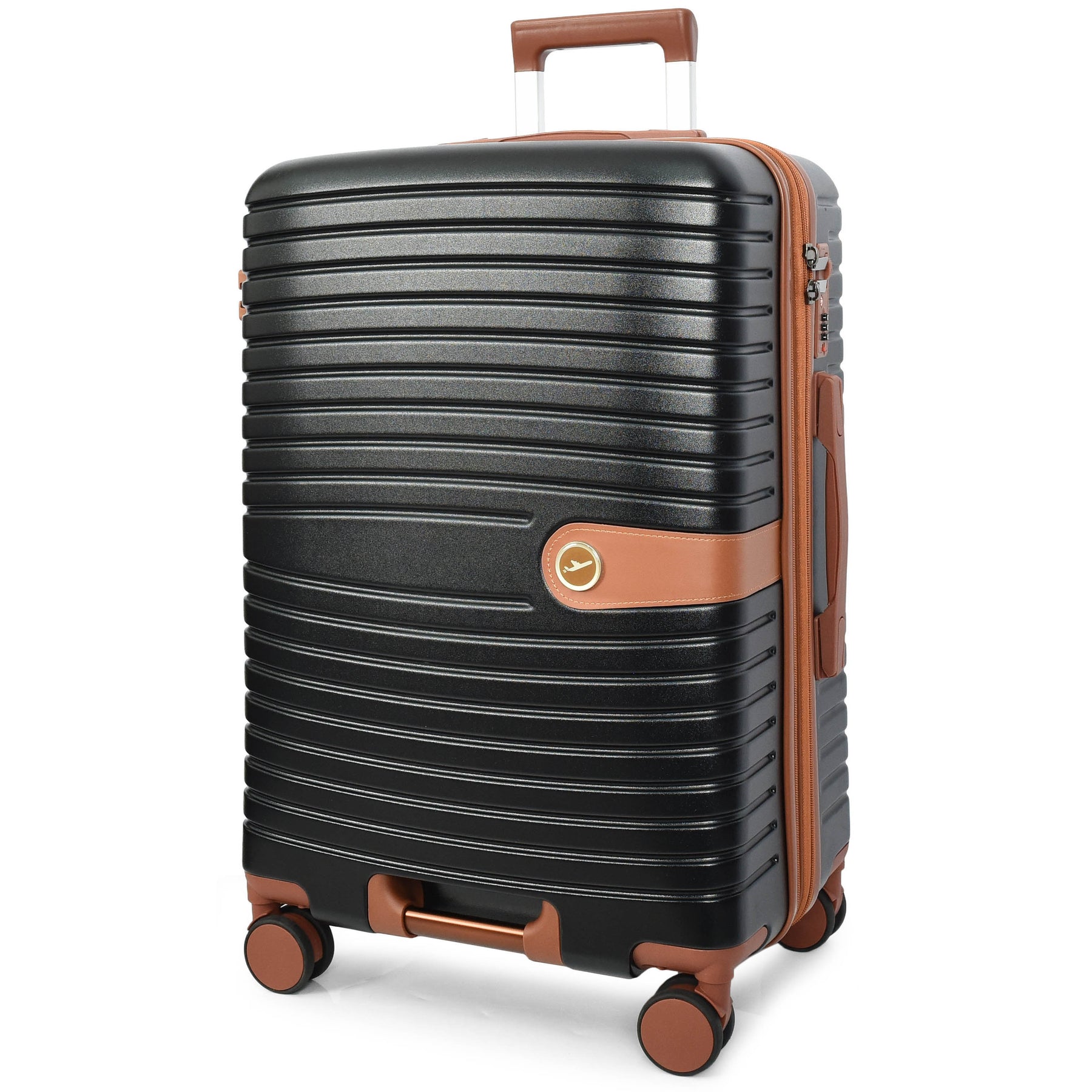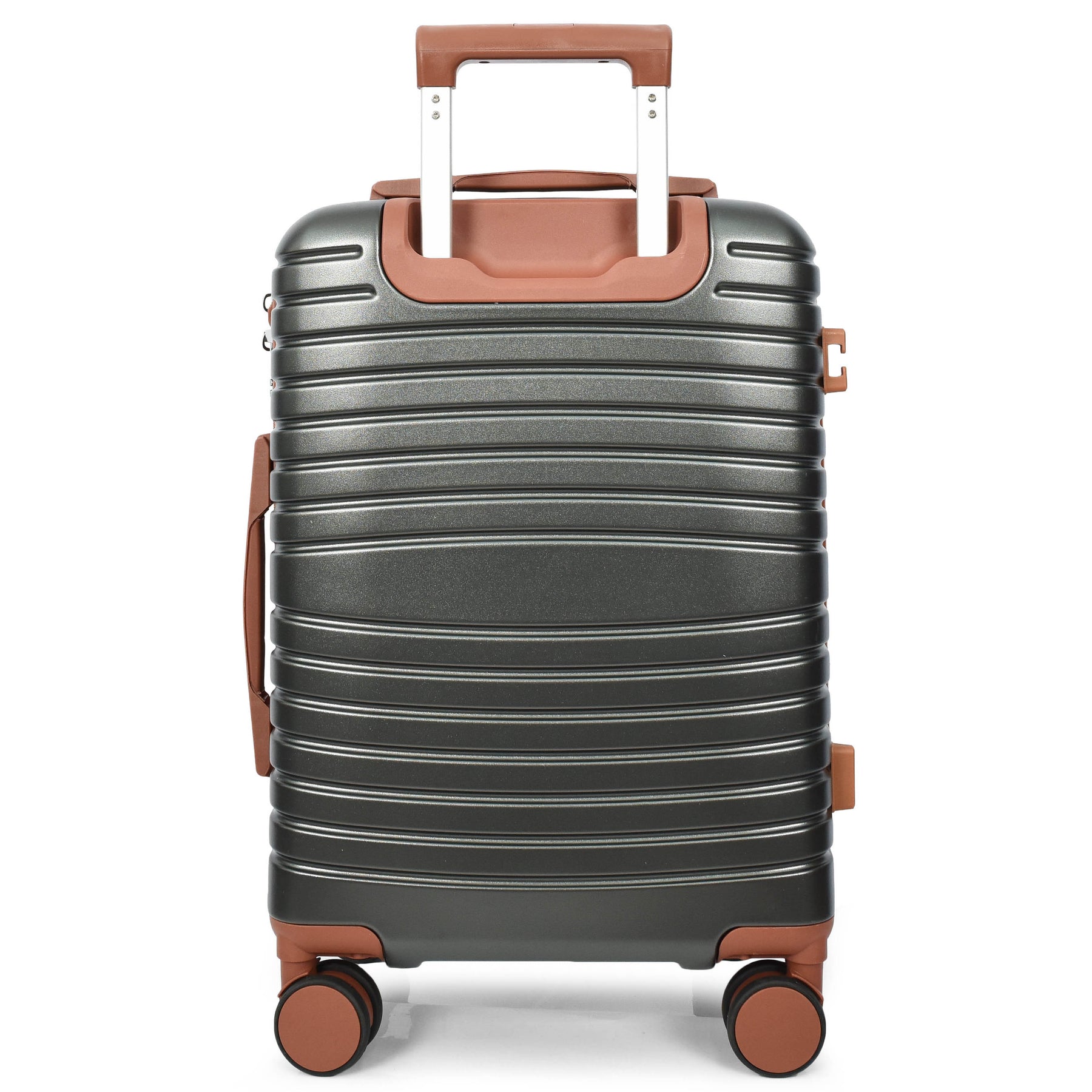 The dual four-spinner wheel system at the base ensures smooth, 360° navigation across all surfaces, while the expandable section offers increased packing capacity when needed.