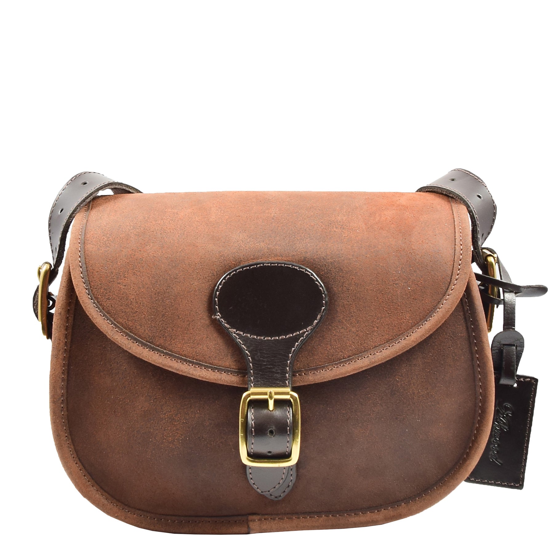 An elegant cartridge bag with 90 rounds capacity section. It has been made from the most prestigious cowhide leather, each use from this bag will allow the leather to age and form a vintage patina. It features an adjustable/ detachable shoulder strap and a bar hinged speed loader buckled flap. The inside of the bag is lined with luxury suede.