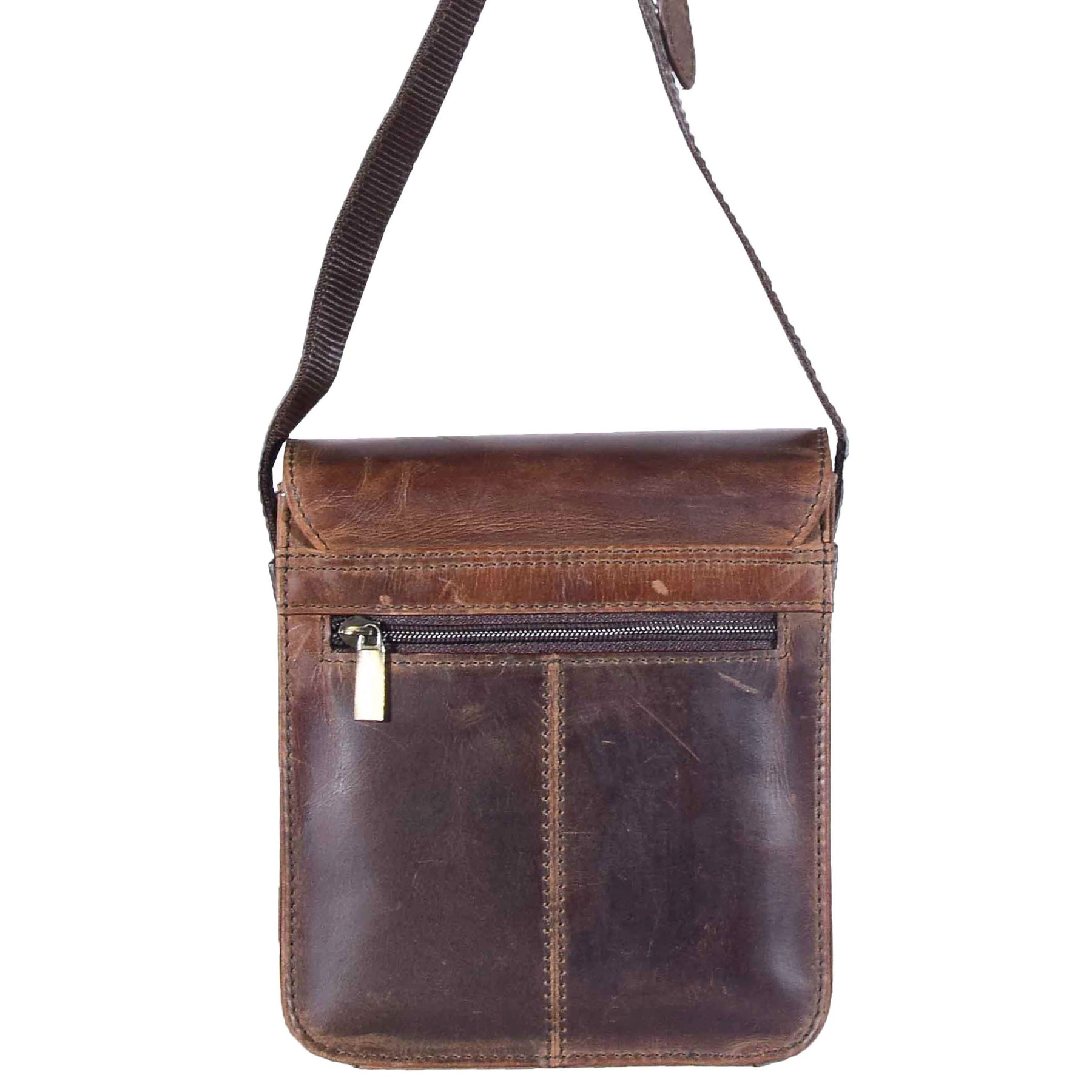 Mens Casual Real Leather Cross Body Organiser Bag NAPLES Brown 4