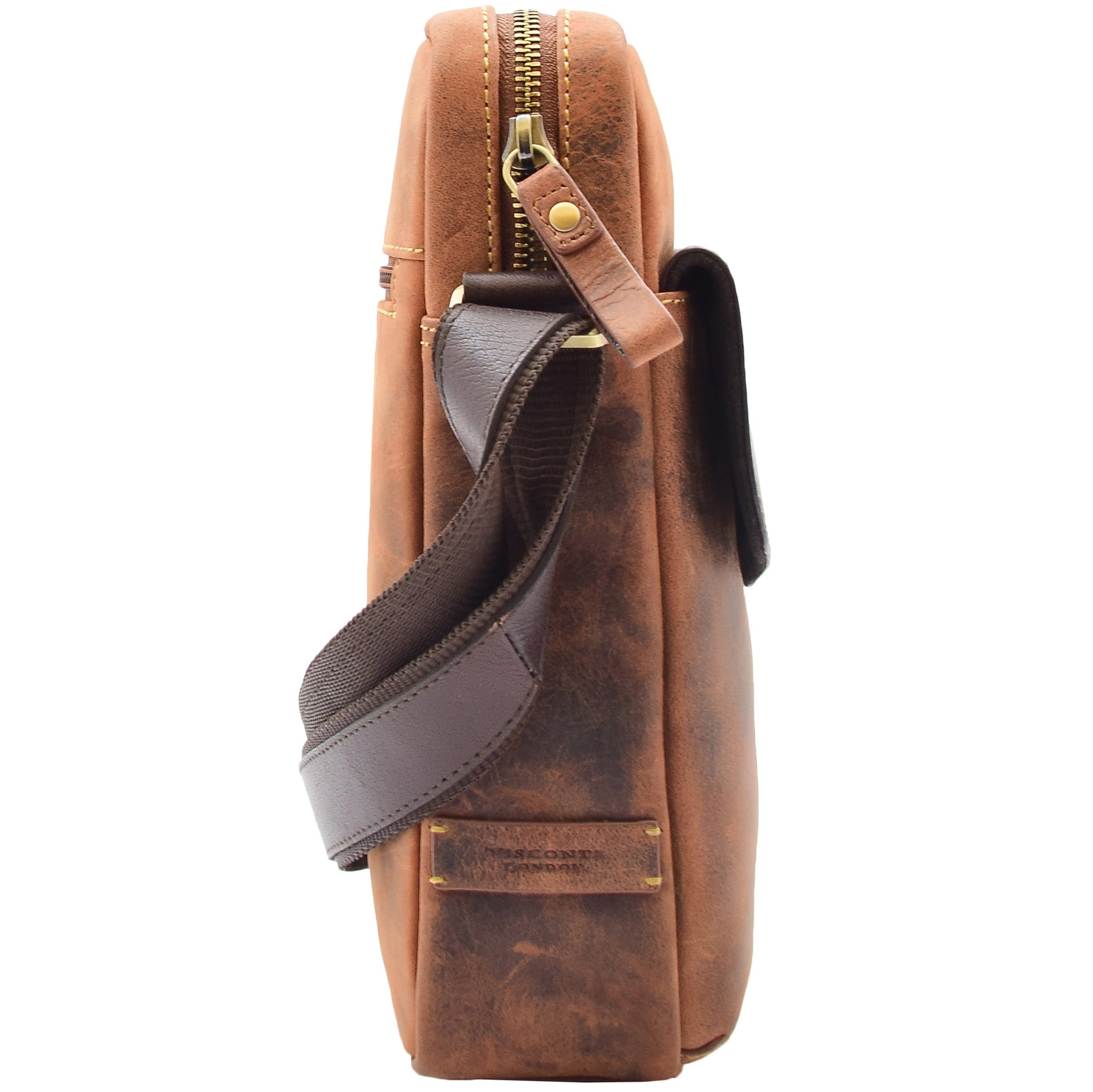 Mens Hunter Crossbody Bag Organiser Genuine Leather Multi Pockets São Paulo Tan 2
