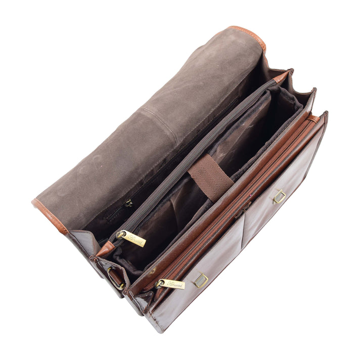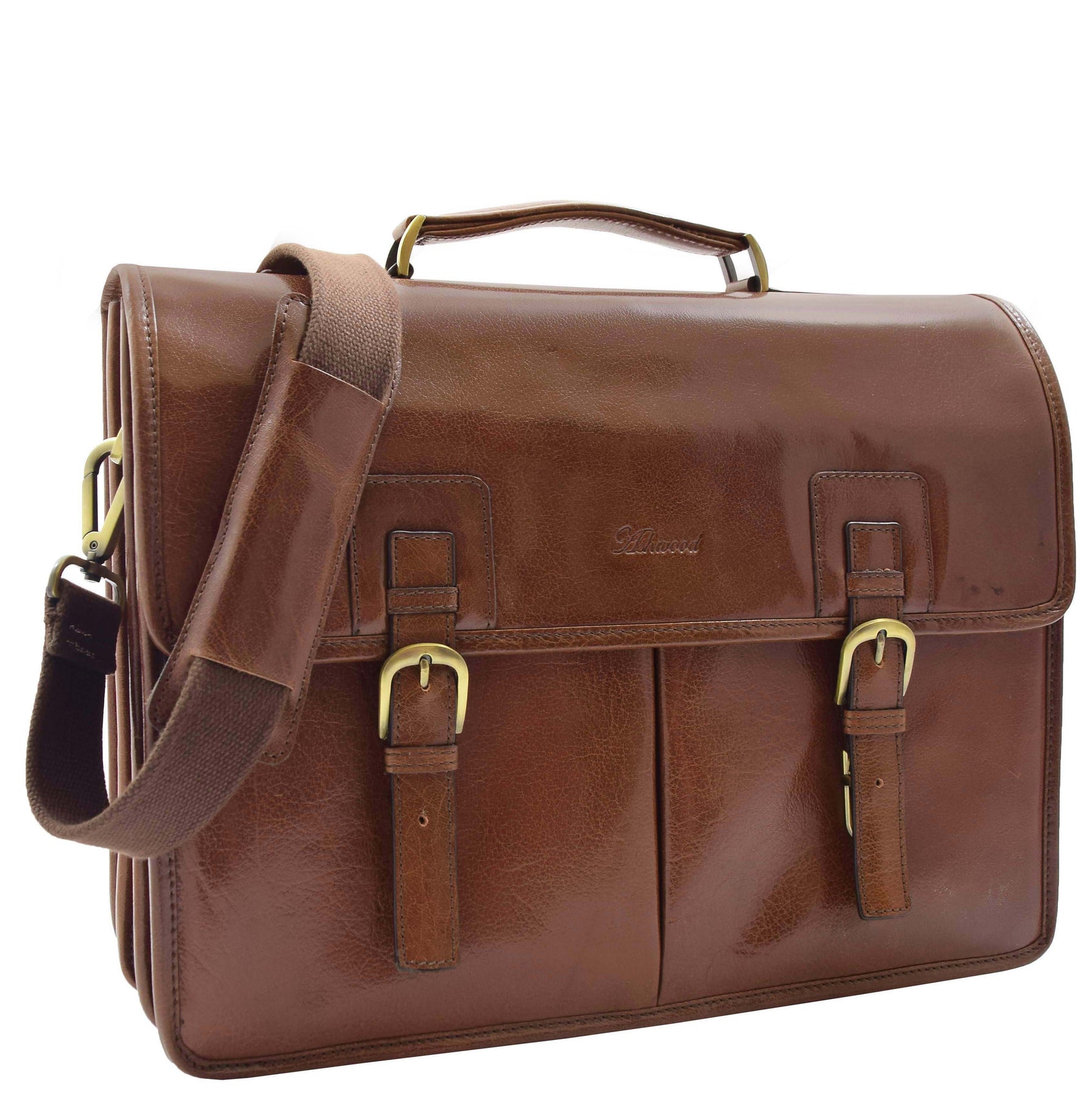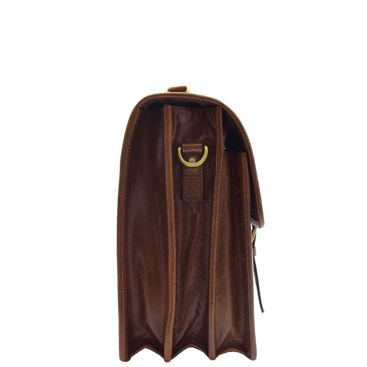 Mens Leather Briefcase Cross Body Bag Buckerell Chestnut Tan