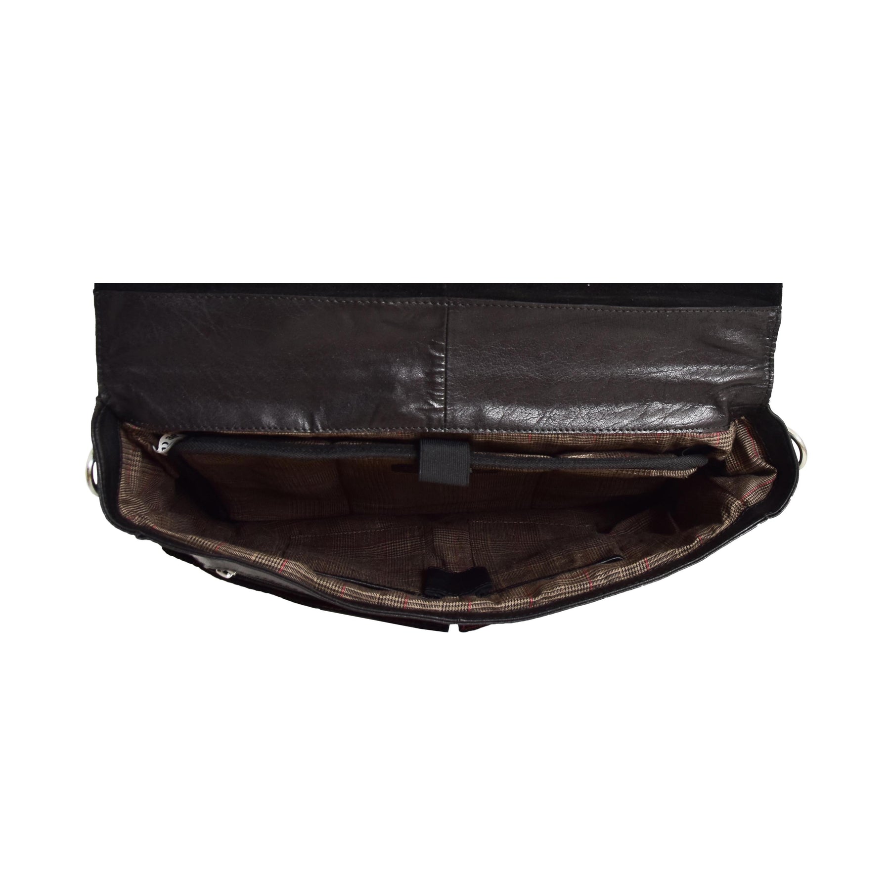 Mens Leather Briefcase Cross Body Satchel Bag Clinton Black inside