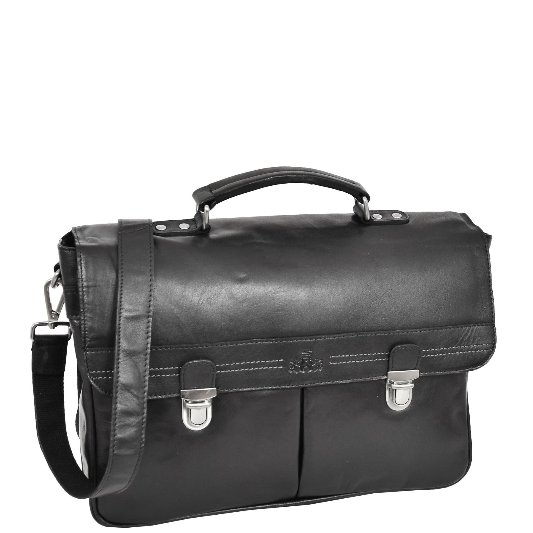 Mens Leather Briefcase Cross Body Satchel Bag Clinton Black bottom