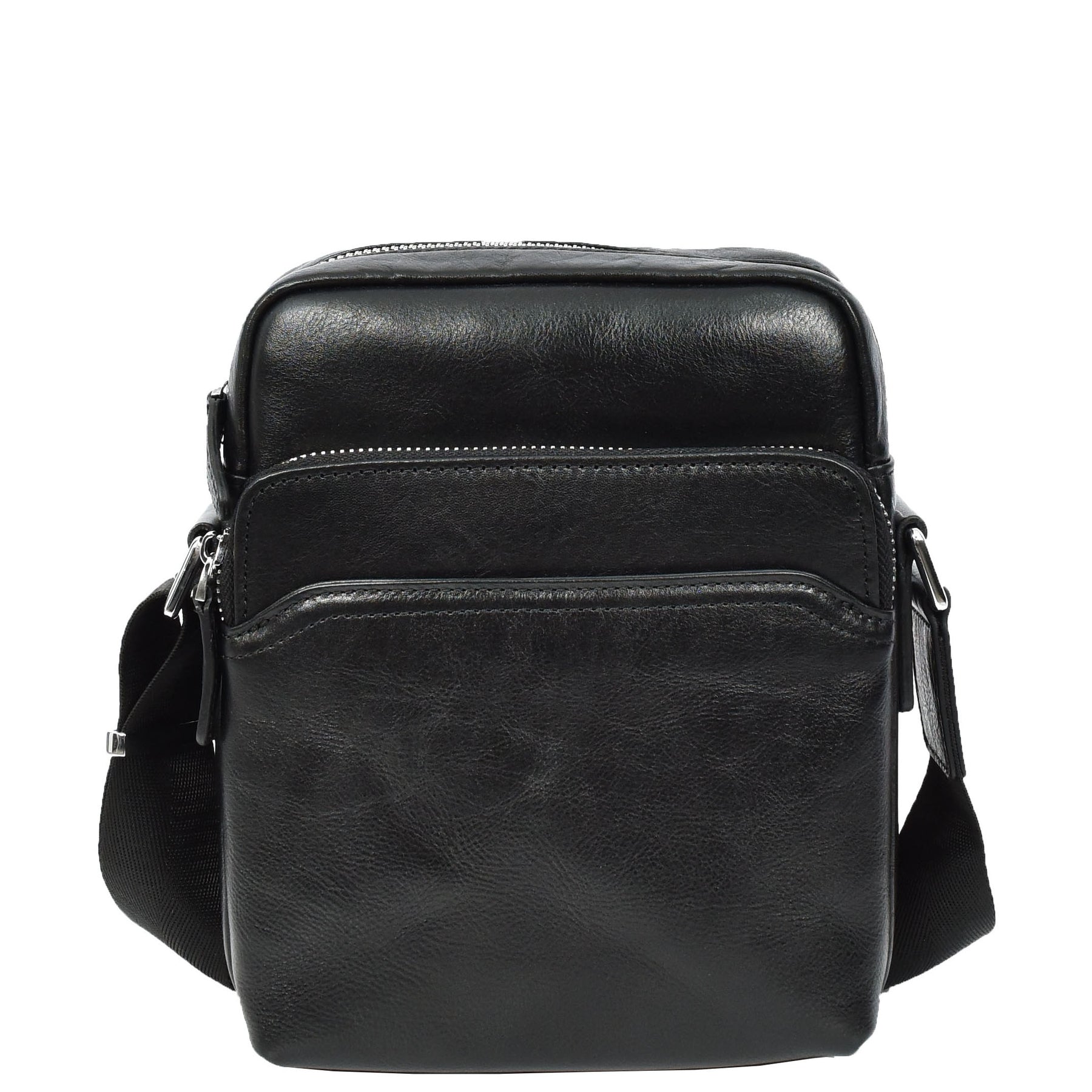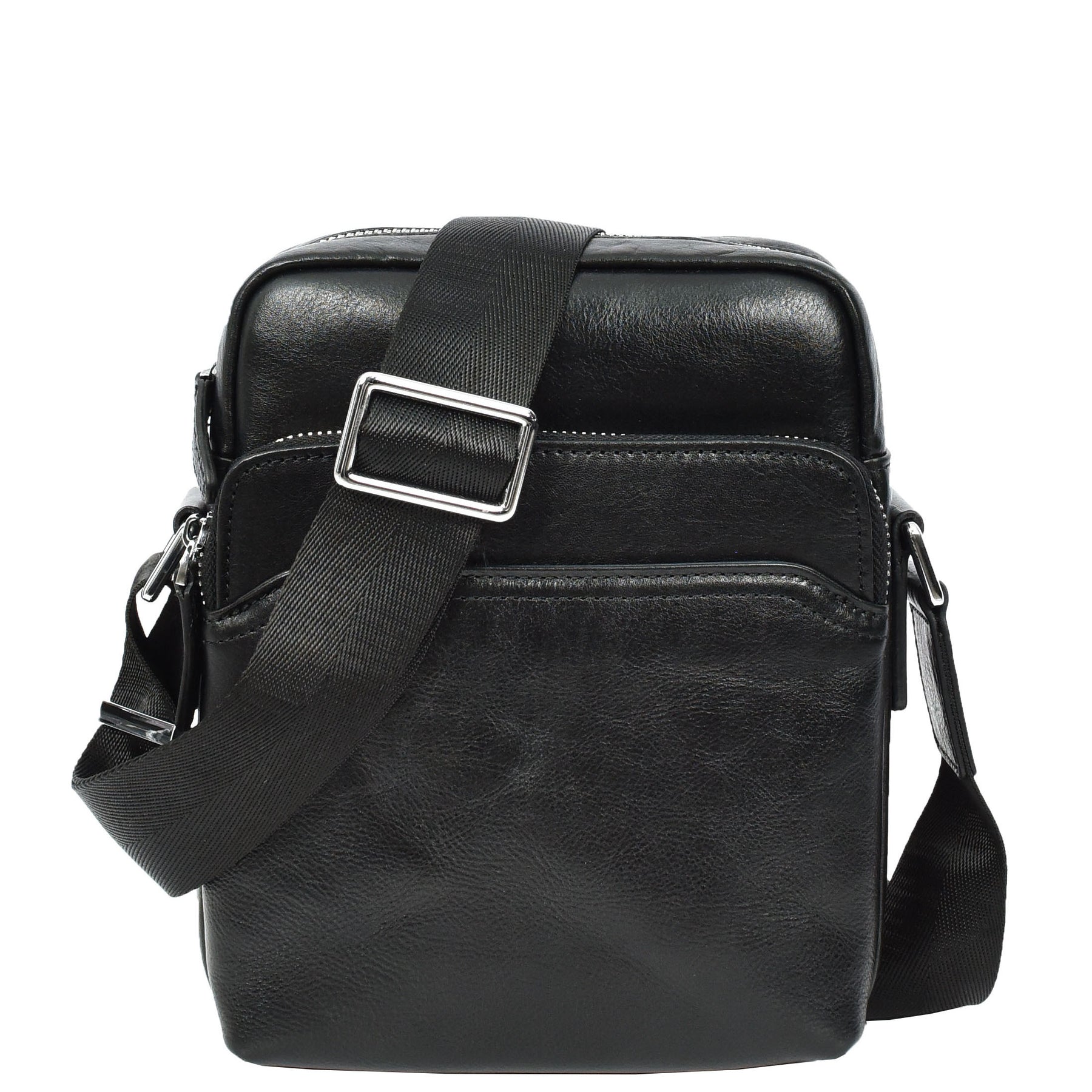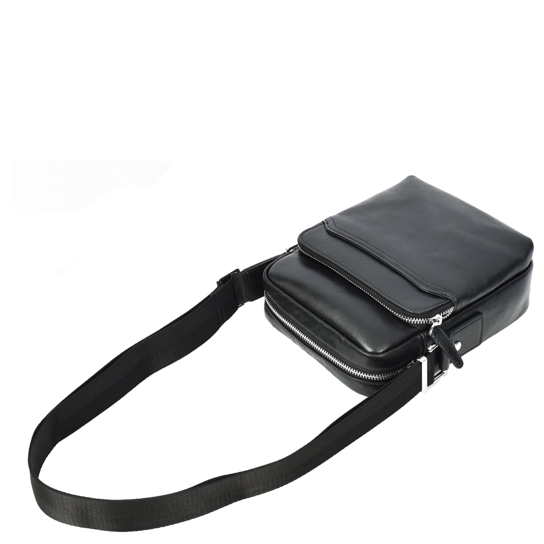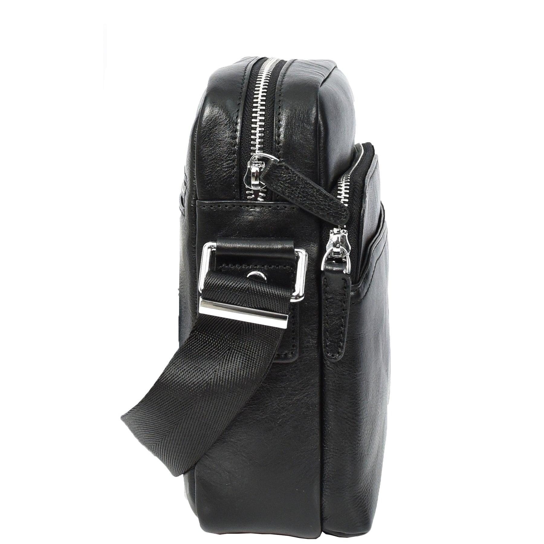 Mens Real Leather Cross Body Bag Small Size Travel Pouch Hanoi Black