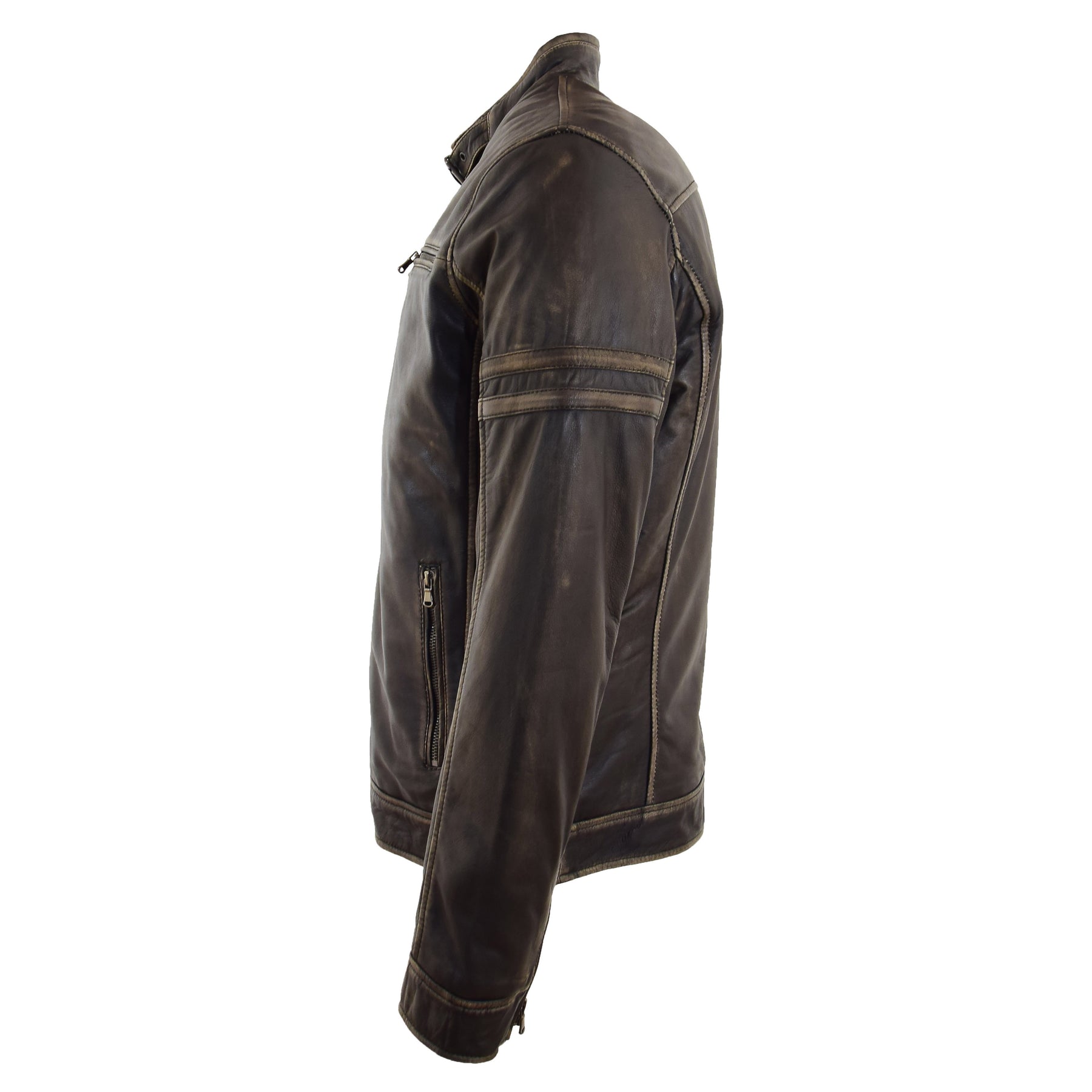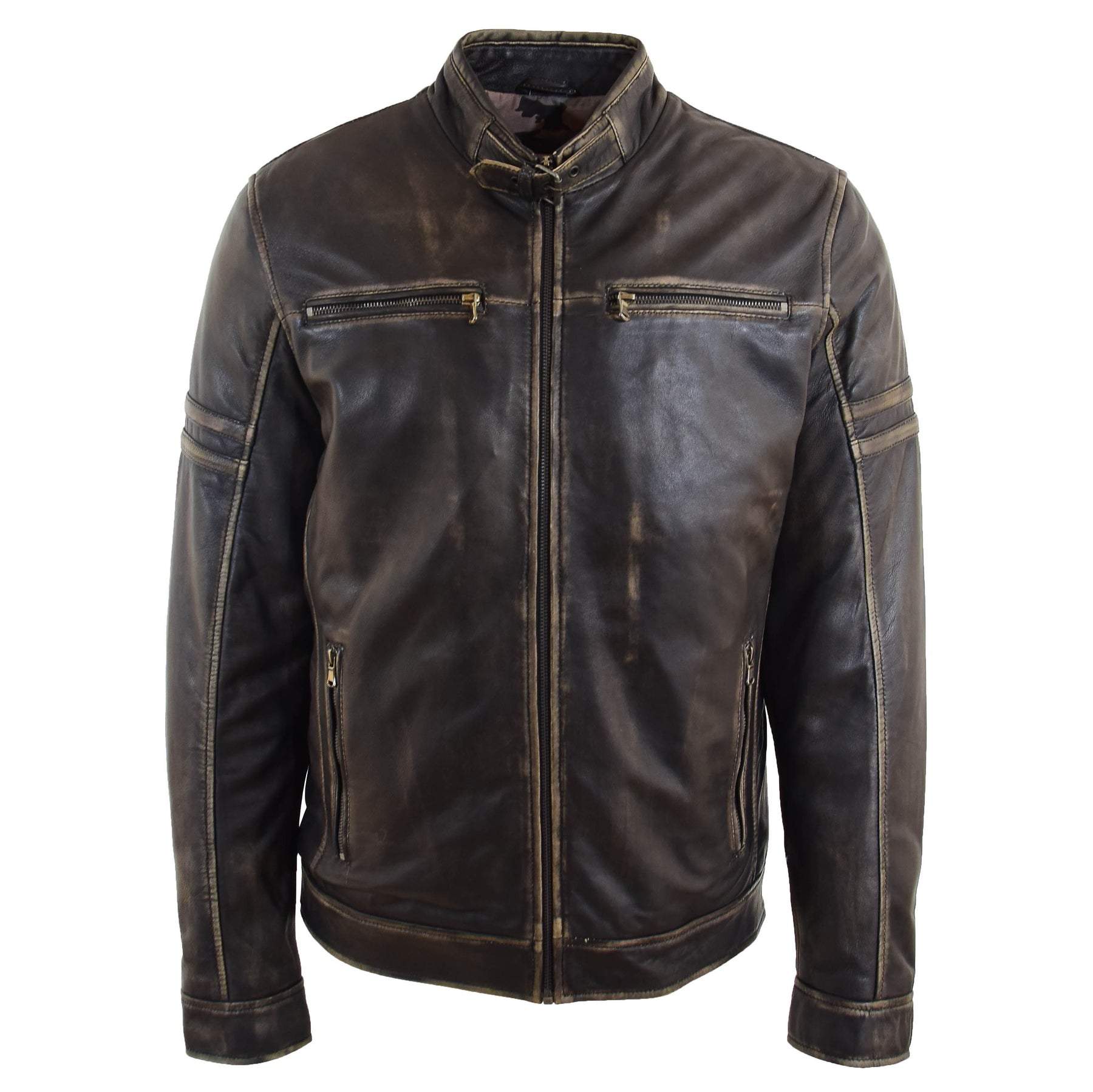 Mens Real Leather Biker Jacket Vintage Rub Off Effect RICKY 5