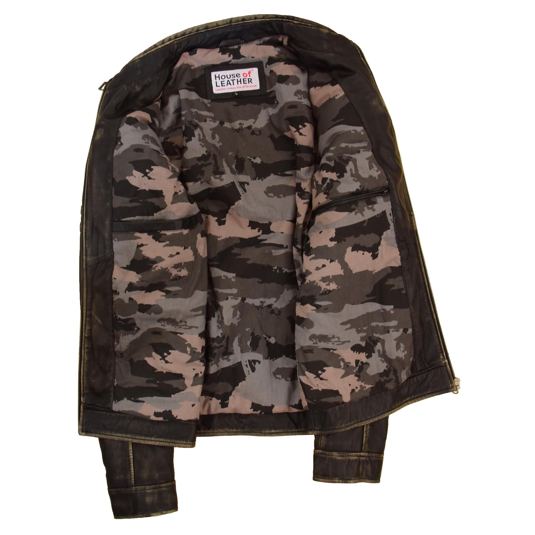 Mens Real Leather Biker Jacket Vintage Rub Off Effect RICKY 8