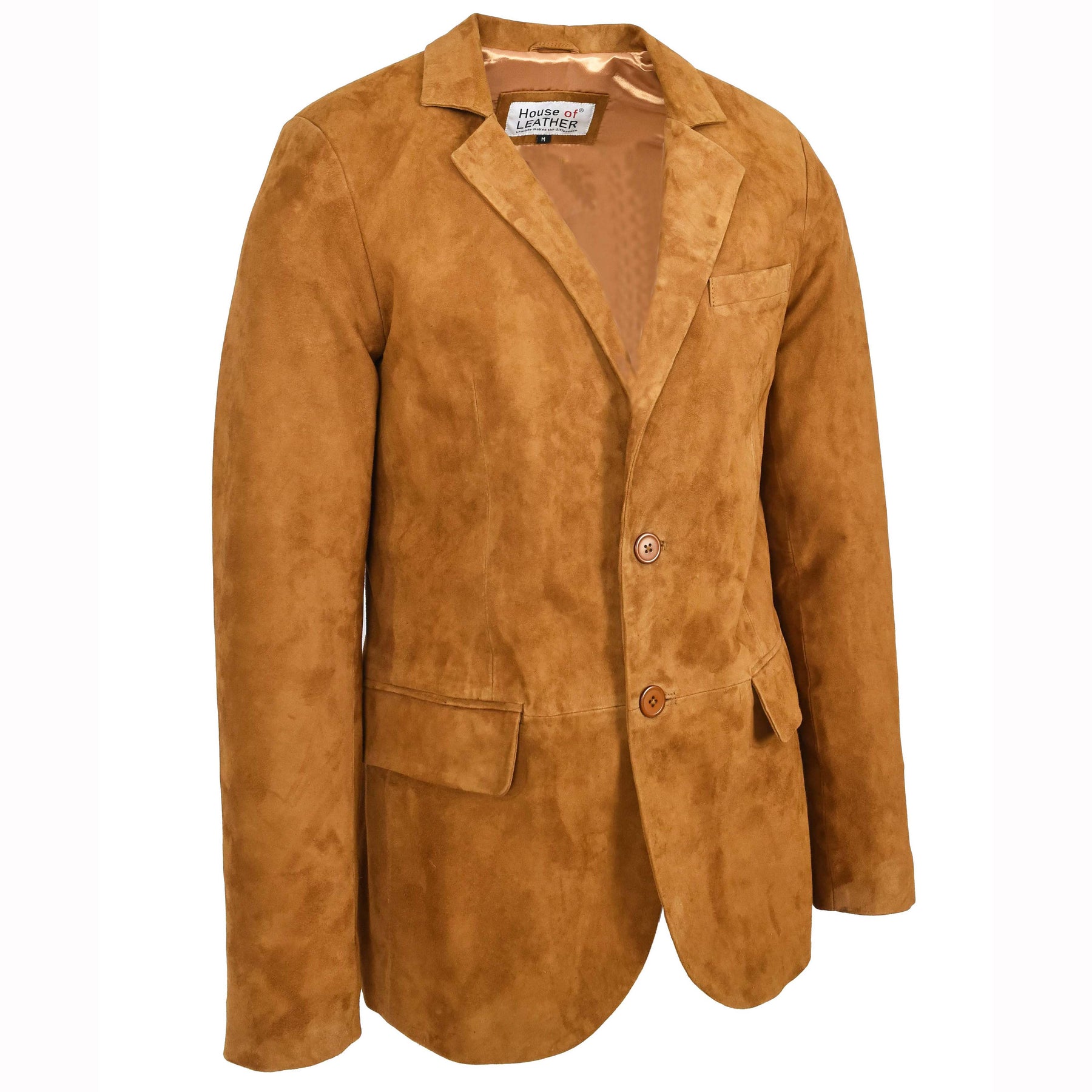 Mens Real Goat Suede Blazer Two Button Classic Jacket Zavi Cognac