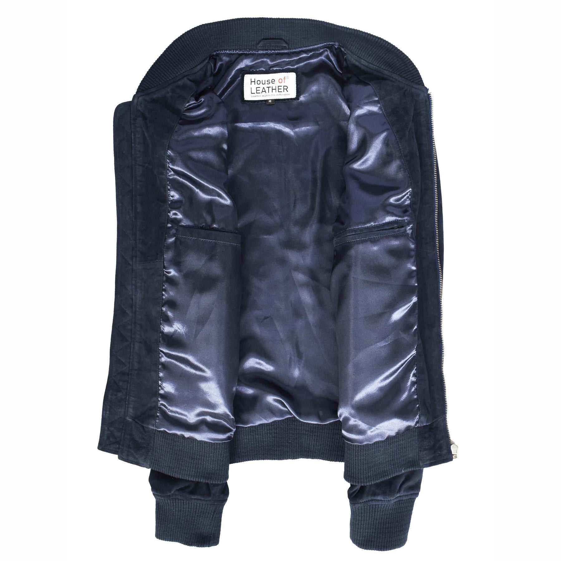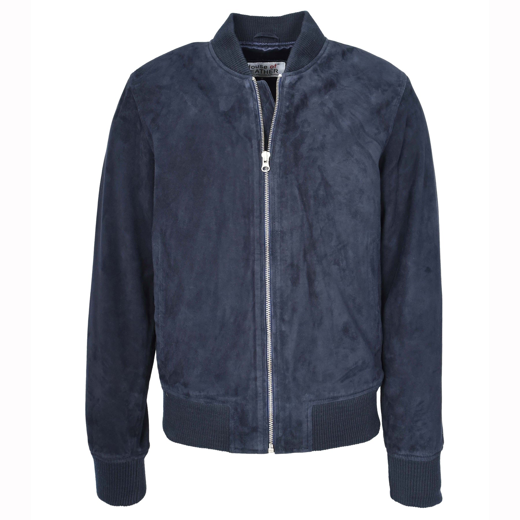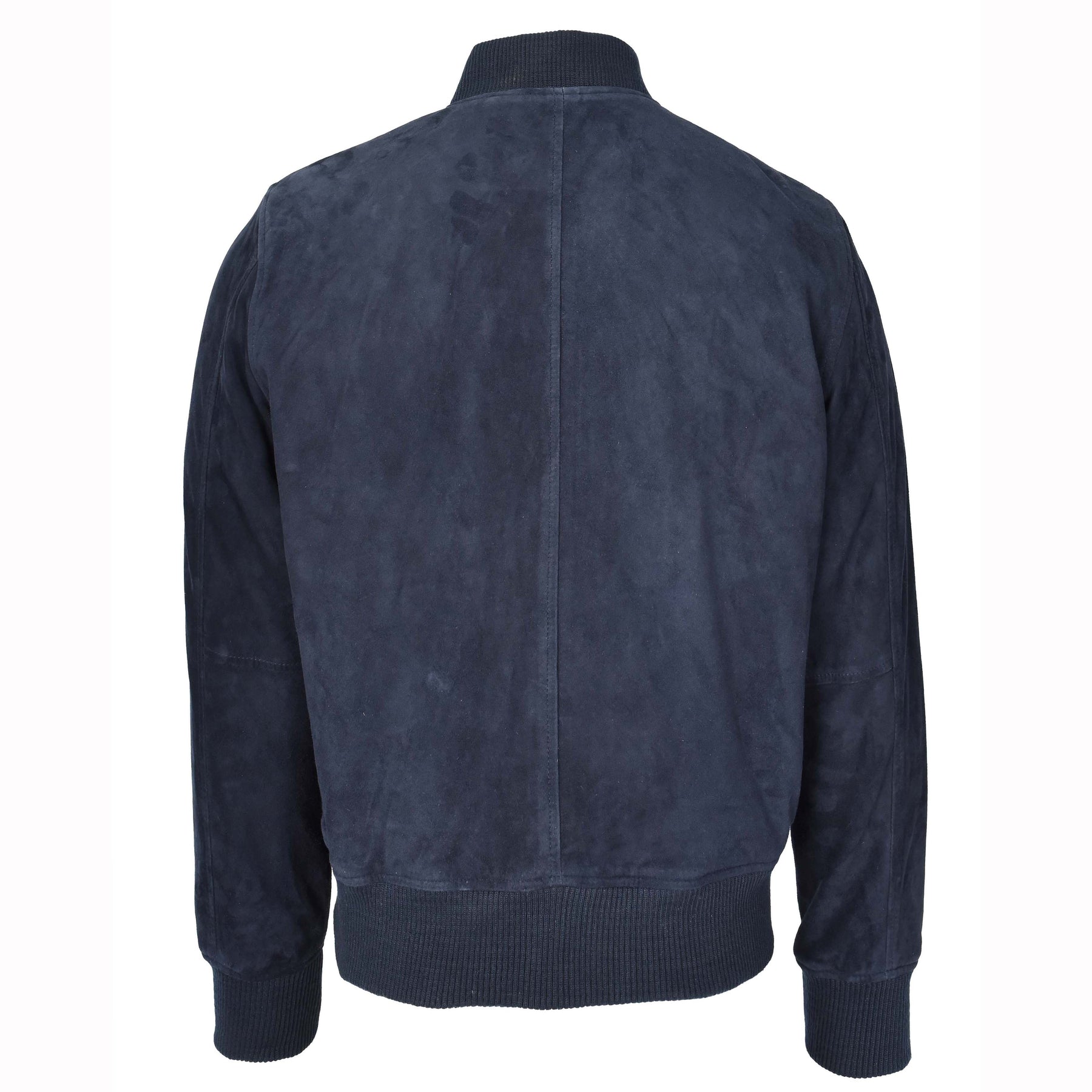 Mens Real Goat Suede Bomber Jacket MA-1 Varsity Design Ryan Navy Blue