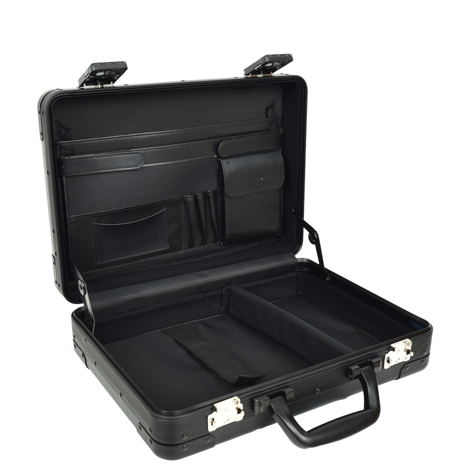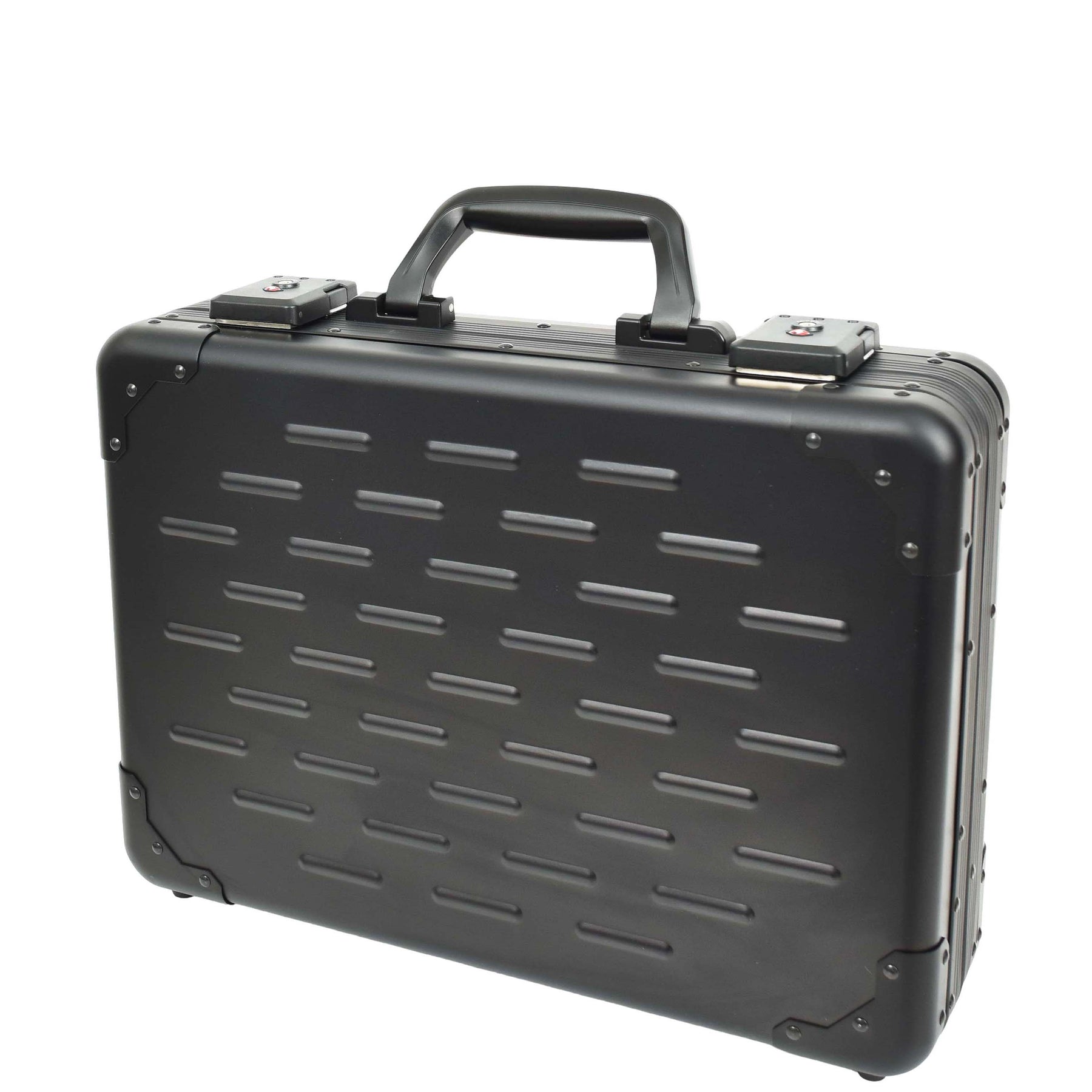 Carbon Black Aluminium Attache Case Twin TSA Combination HOL3496