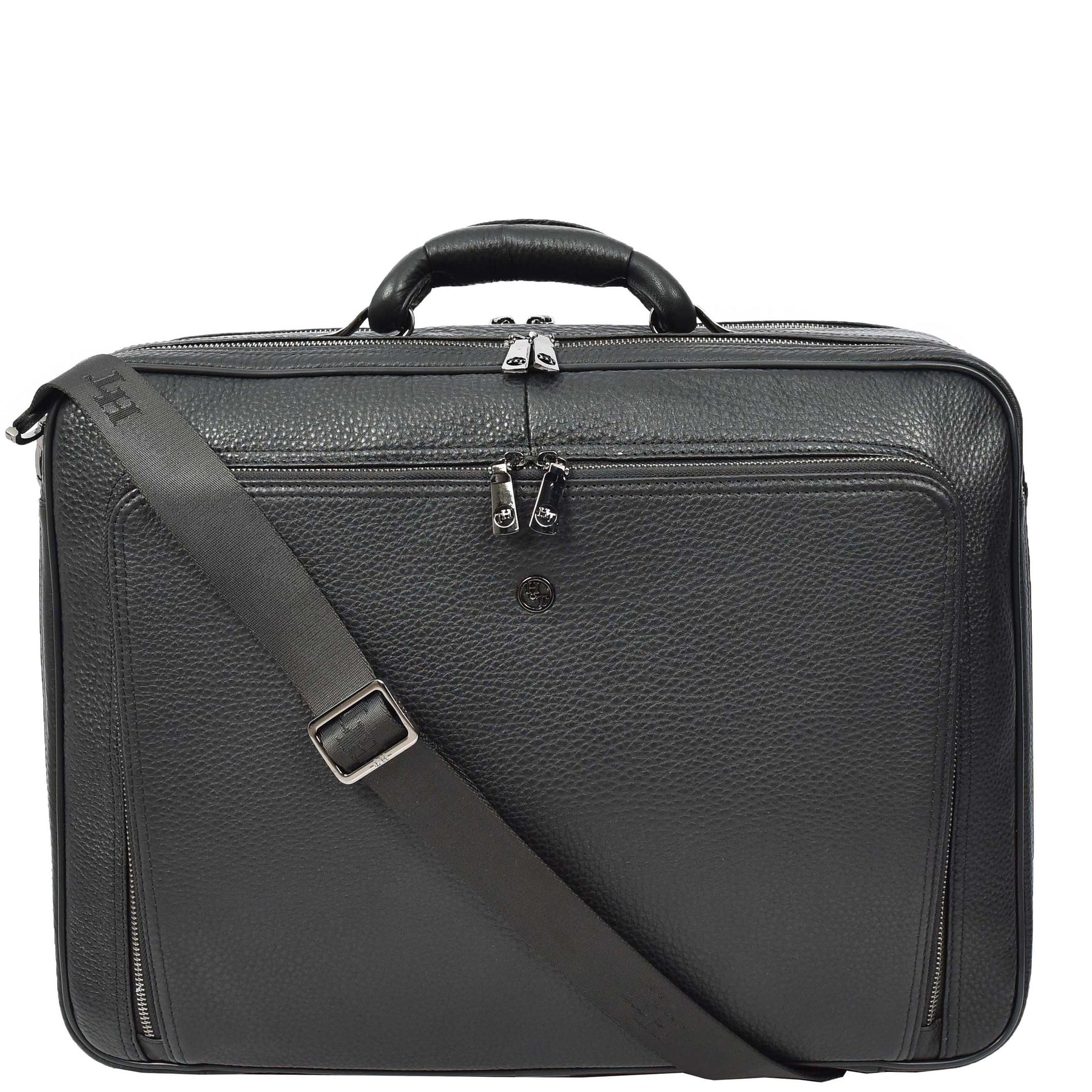 Crafted from premium quality leather with durable metal zippers and polyester lining, this briefcase combines luxury with functionality. this large capacity bag features premium black leather construction with a pebbled texture and sleek silver hardware .