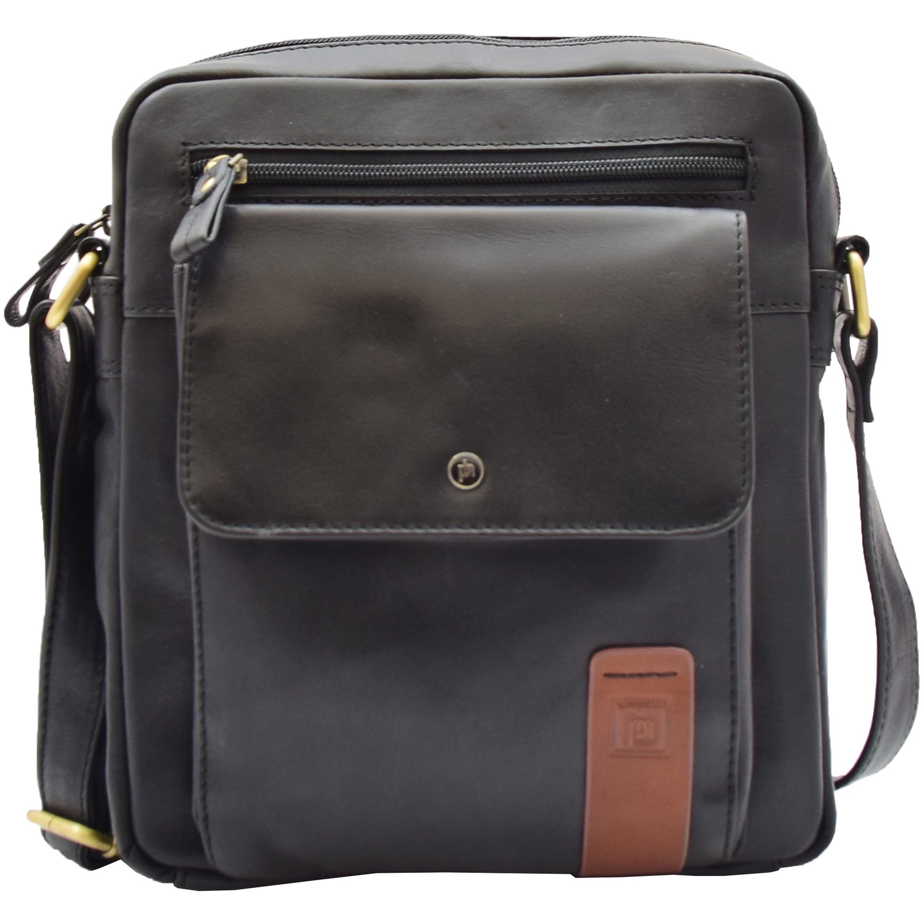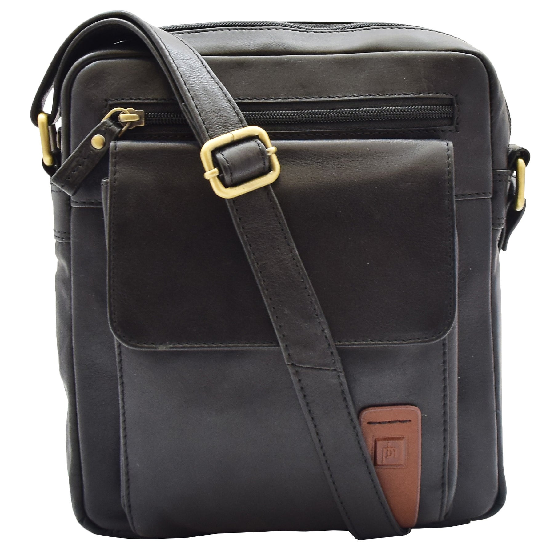 Mens Everyday Casual Leather Cross Body Travel Organiser Bag Vila Rica Black
