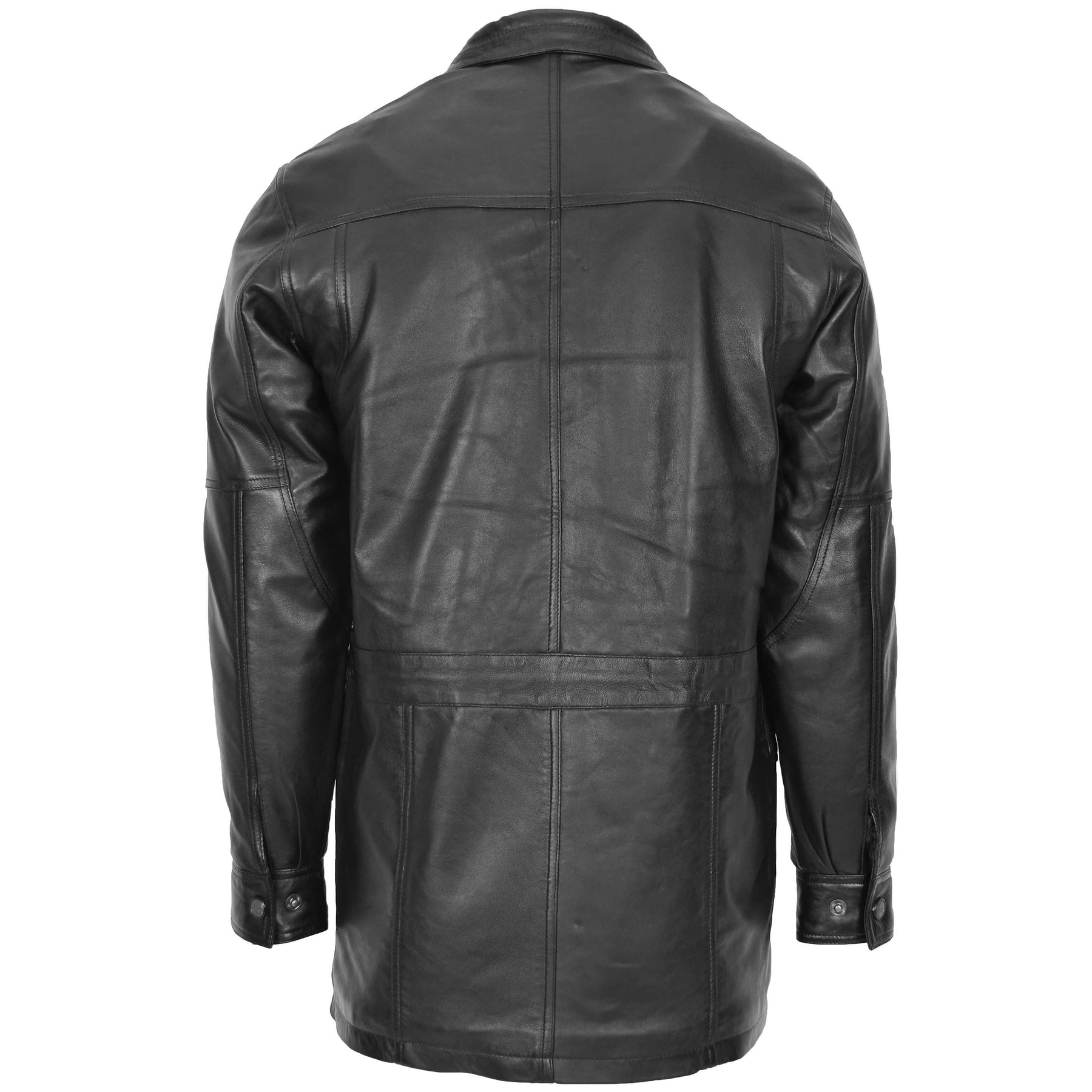 Mens Leather Winter Car Coat Hip Length Jason Black 5