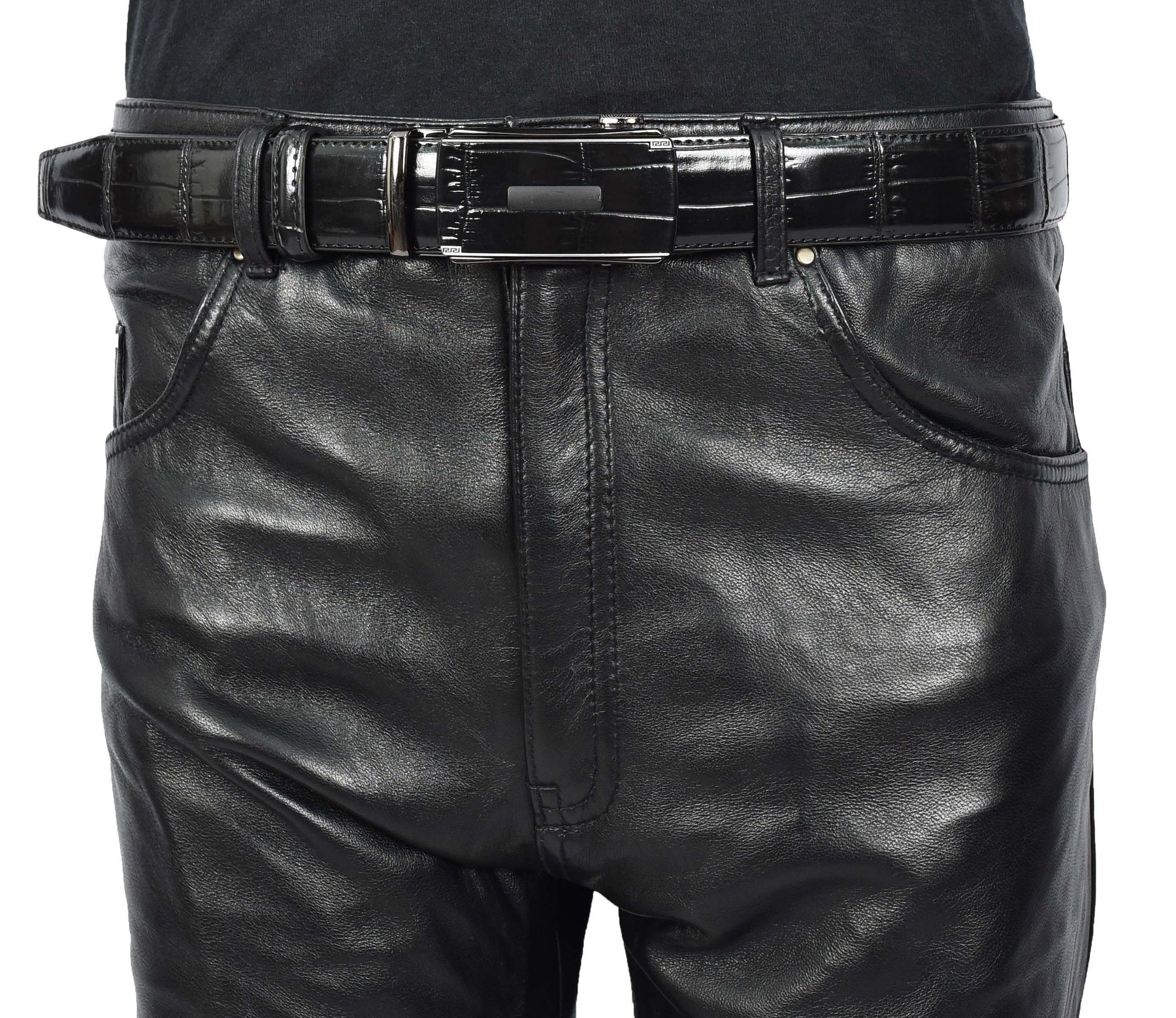 Elevate your wardrobe with this sophisticated leather ratchet belt.