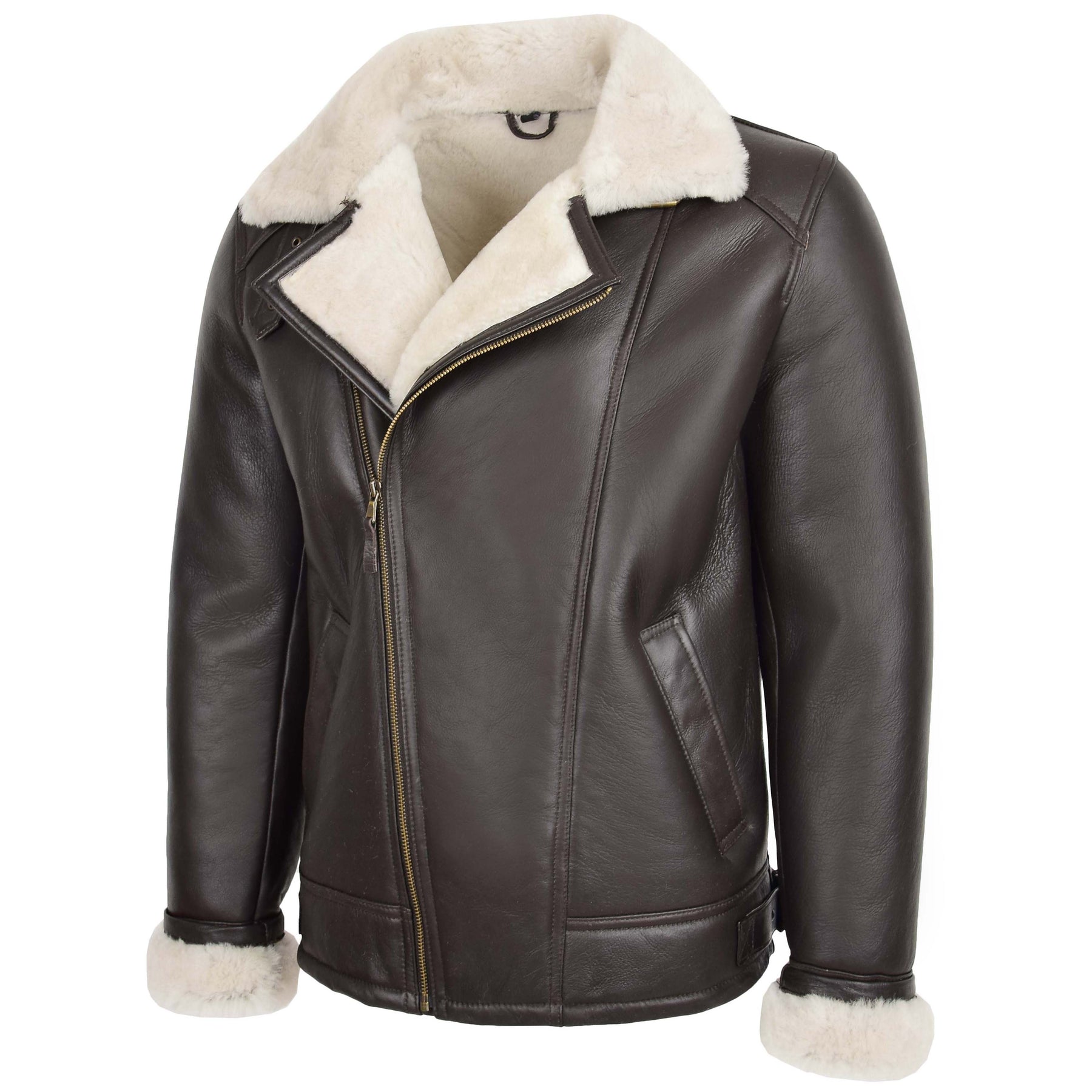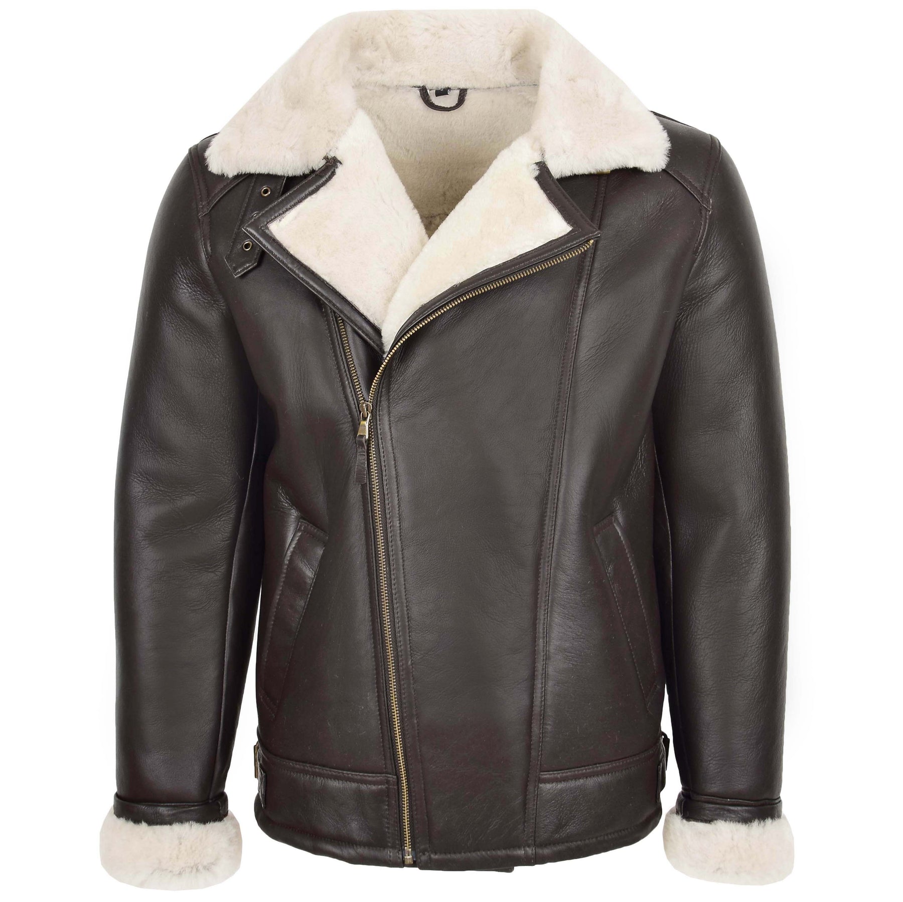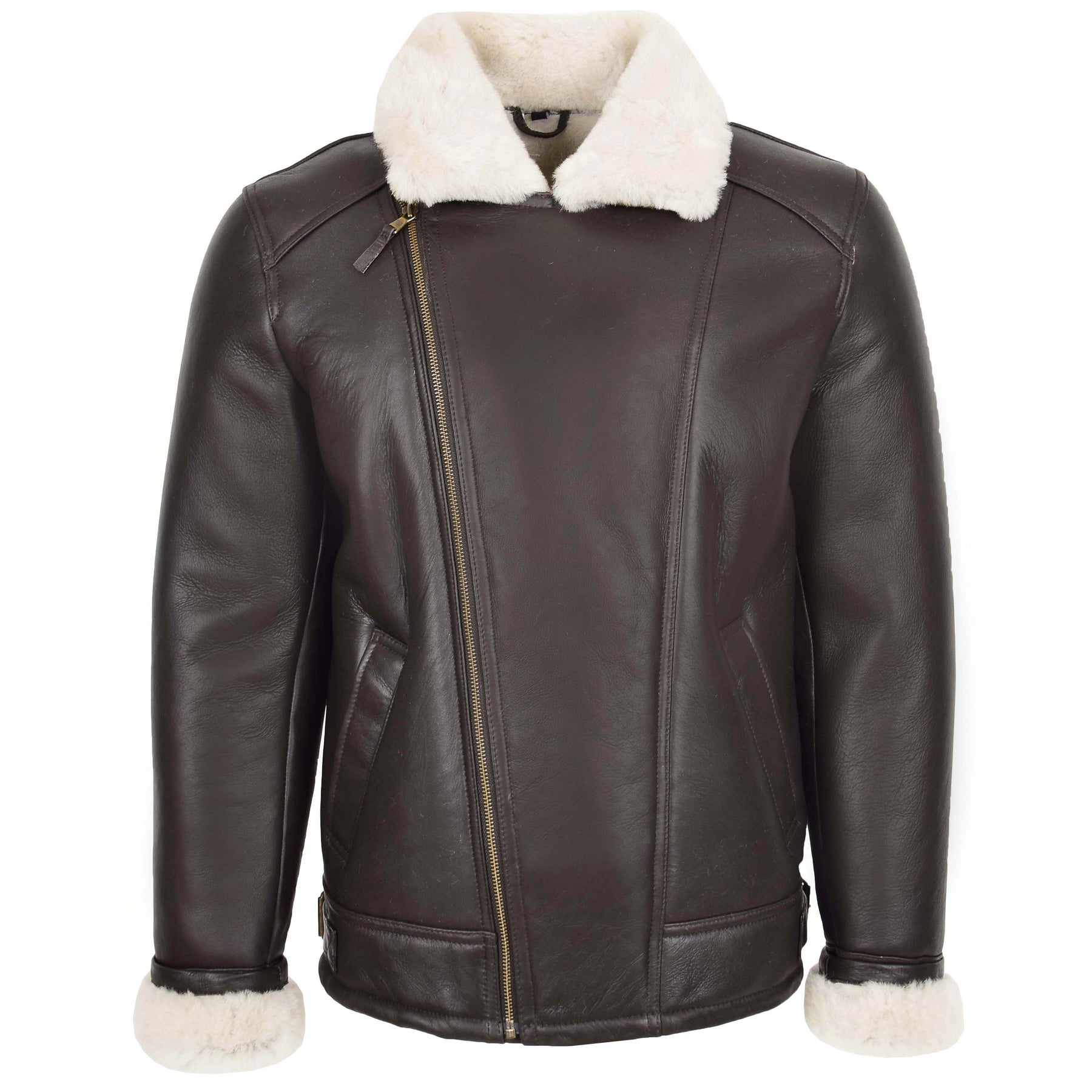 Mens Aviator Sheepskin Pilot Jacket Blen Brown White