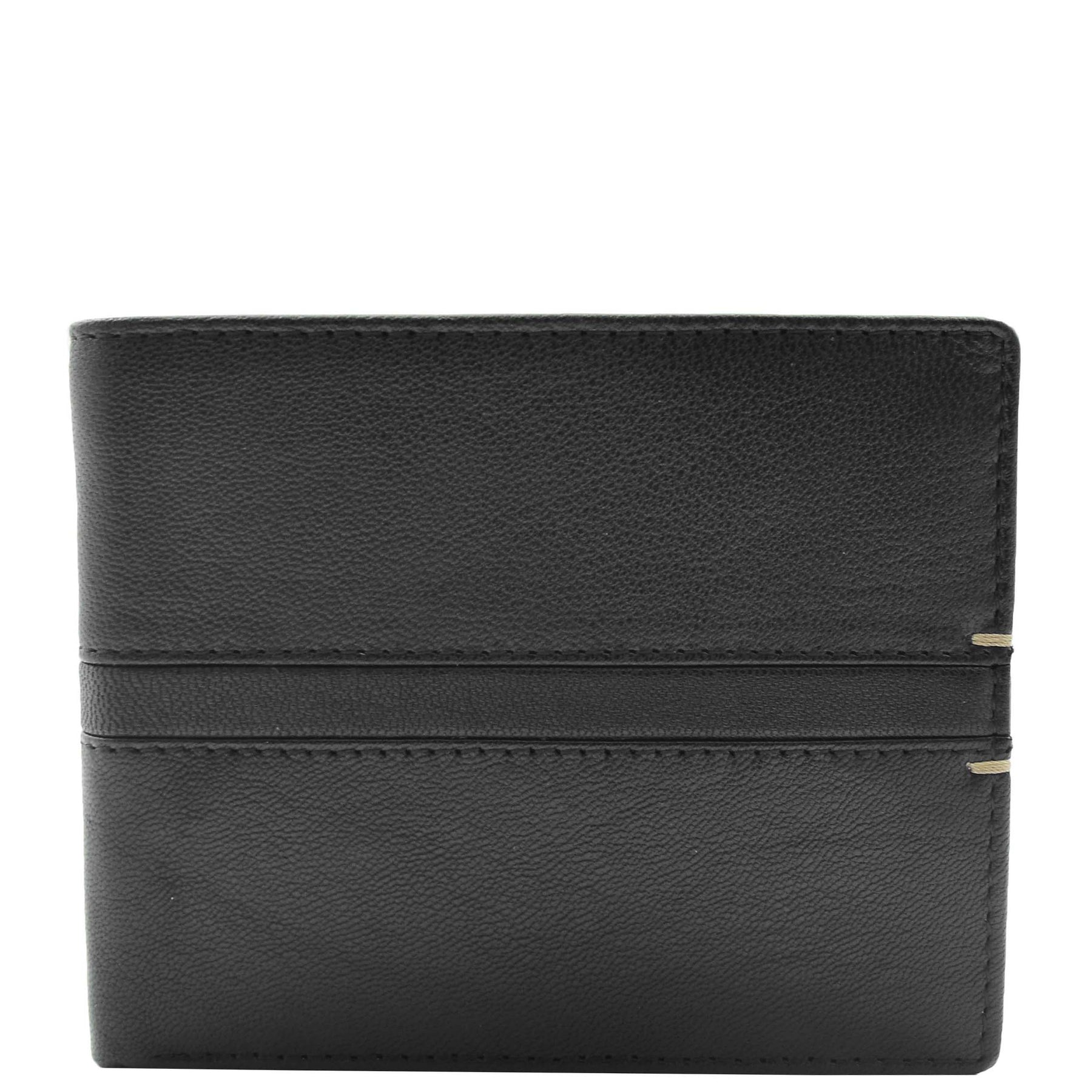 Mens Leather Slim Bifold Wallet HOL802 Black