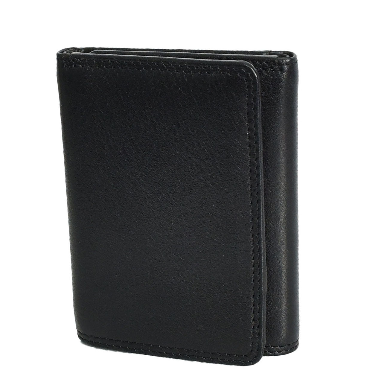 Mens Leather Tri-fold RFID Slim Wallet Banknotes Credit Cards ID Card Holder HOL181 Black
