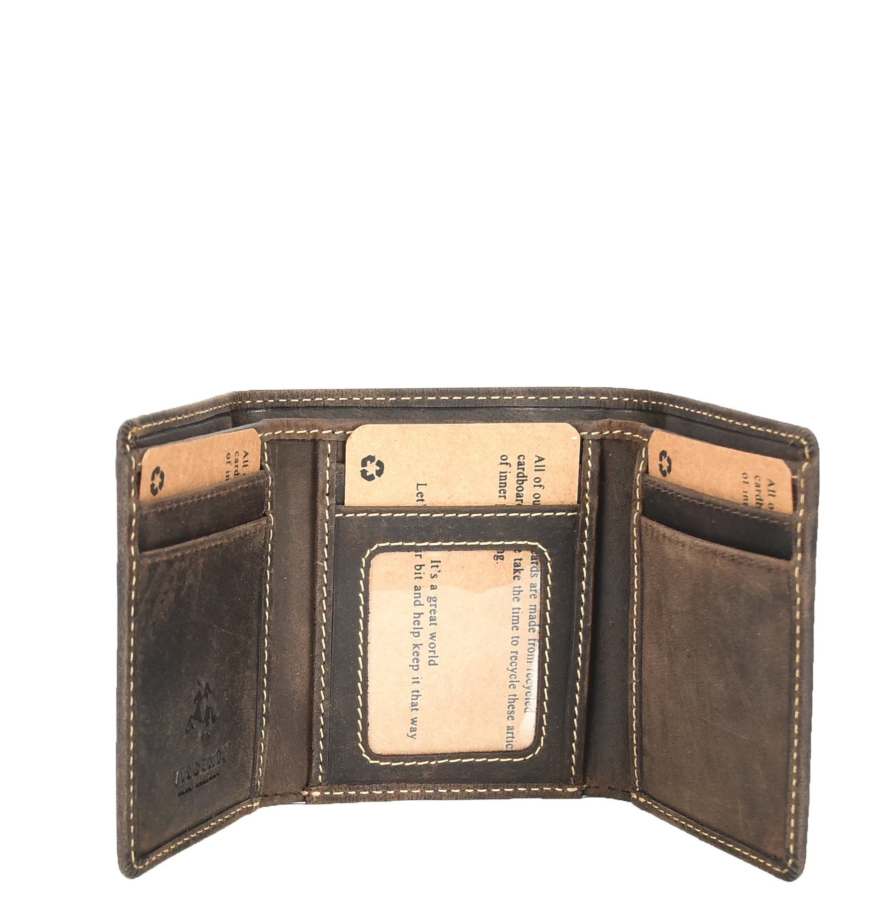 Mens Real Leather Tri-fold Wallet Credit Cards Banknotes ID Card RFID Blocking HOL700 Oil Brown