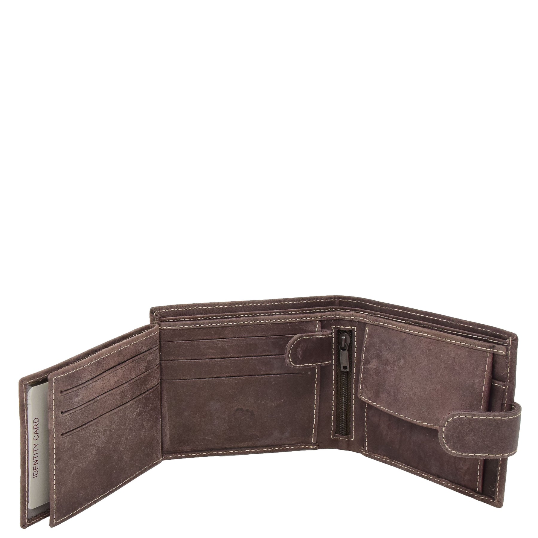 A smart shape soft leather wallet for mens, made from cow leather which is very durable. It features six card slots, three clear photo ID window slots, zipped security pocket and a snap closure coin pocket. There are two bank notes sections.