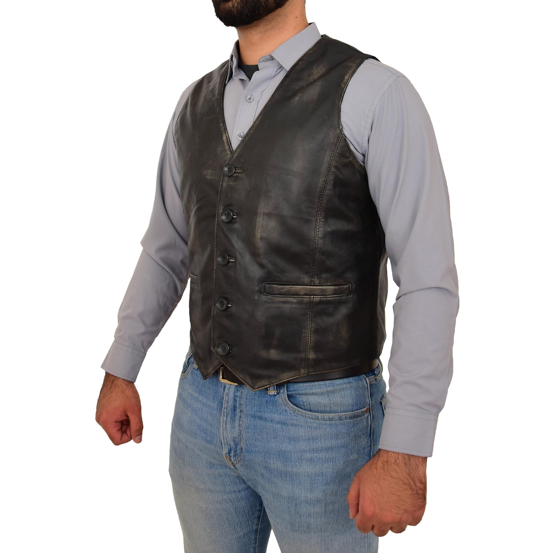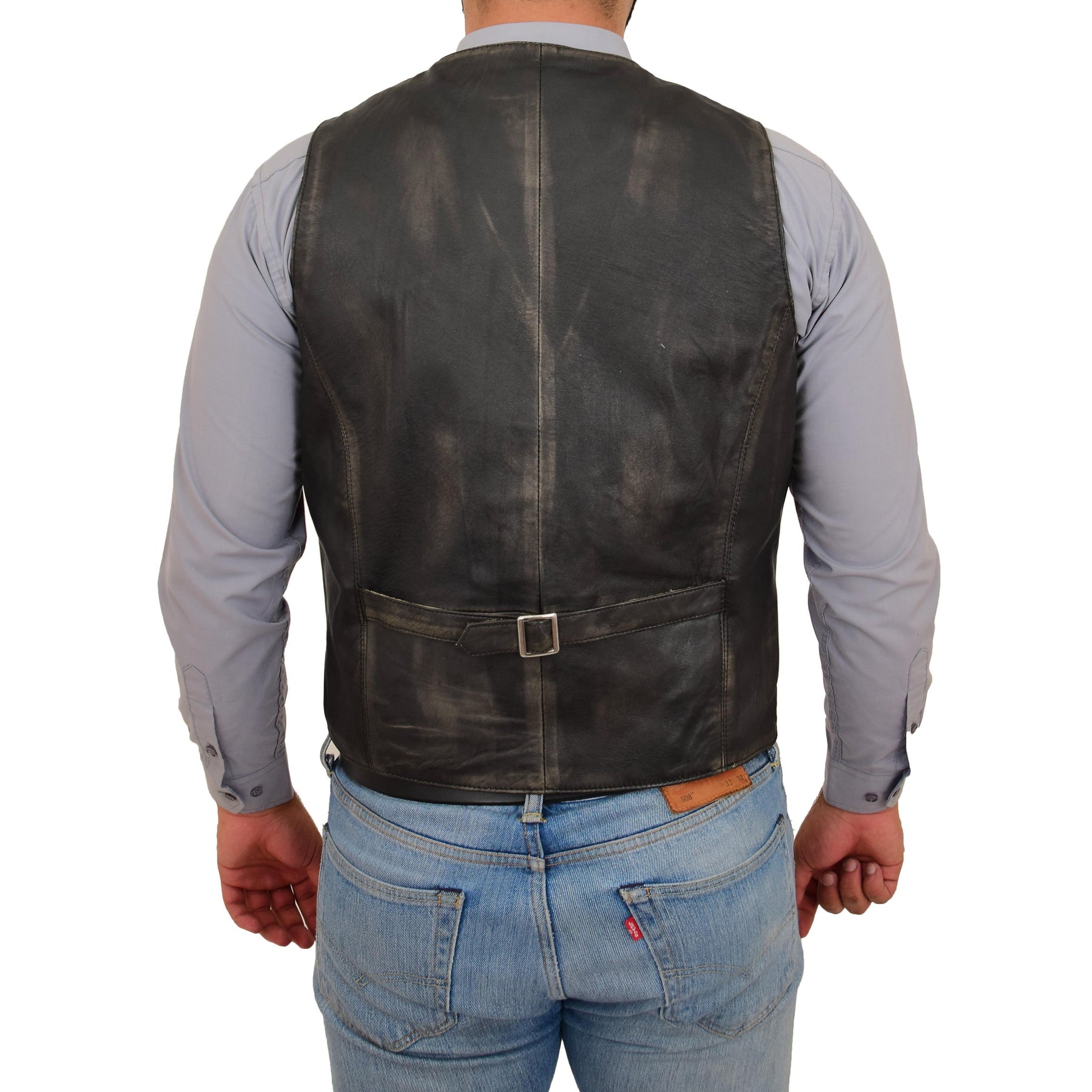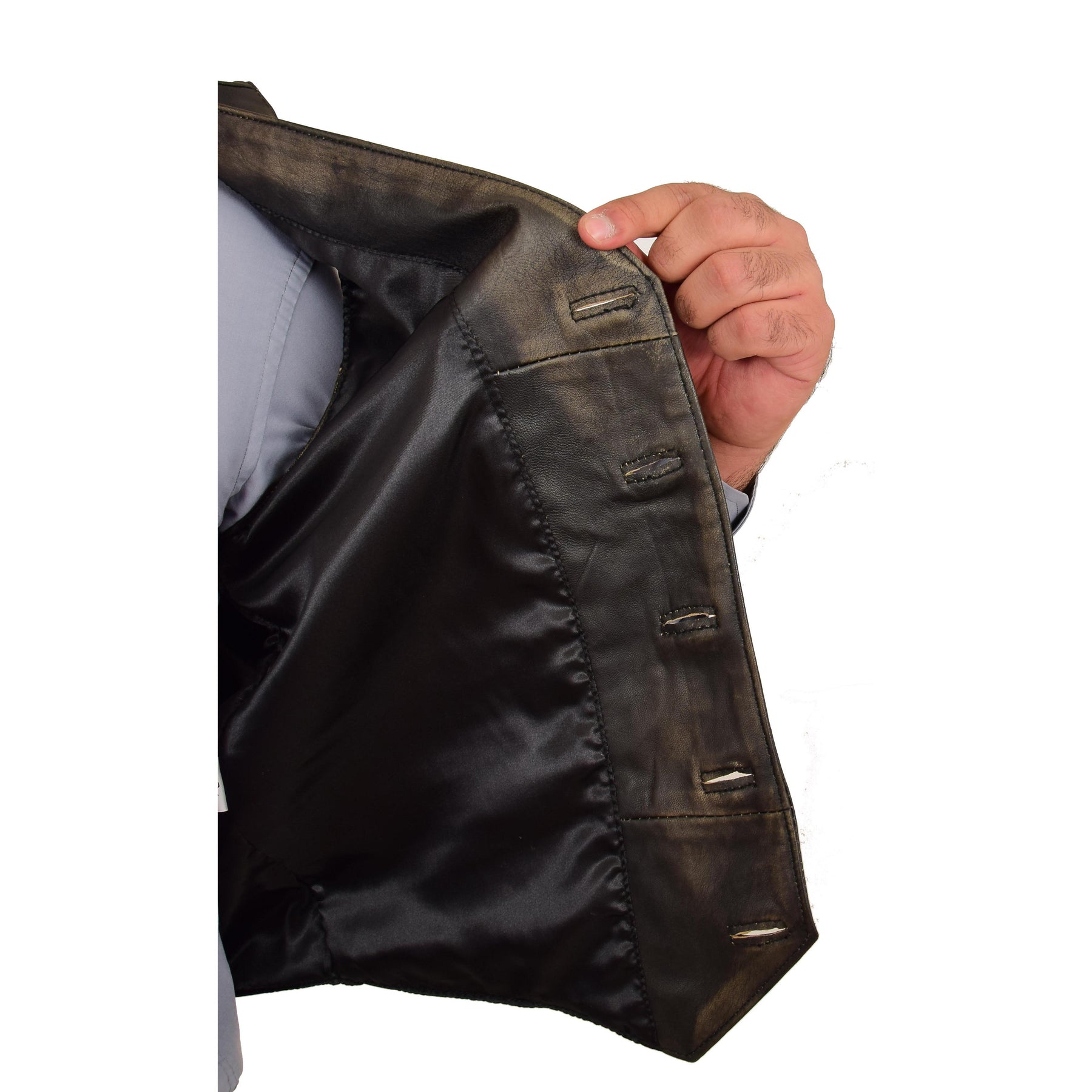 Mens Button Fastening Leather Waistcoat Nick Black Vintage