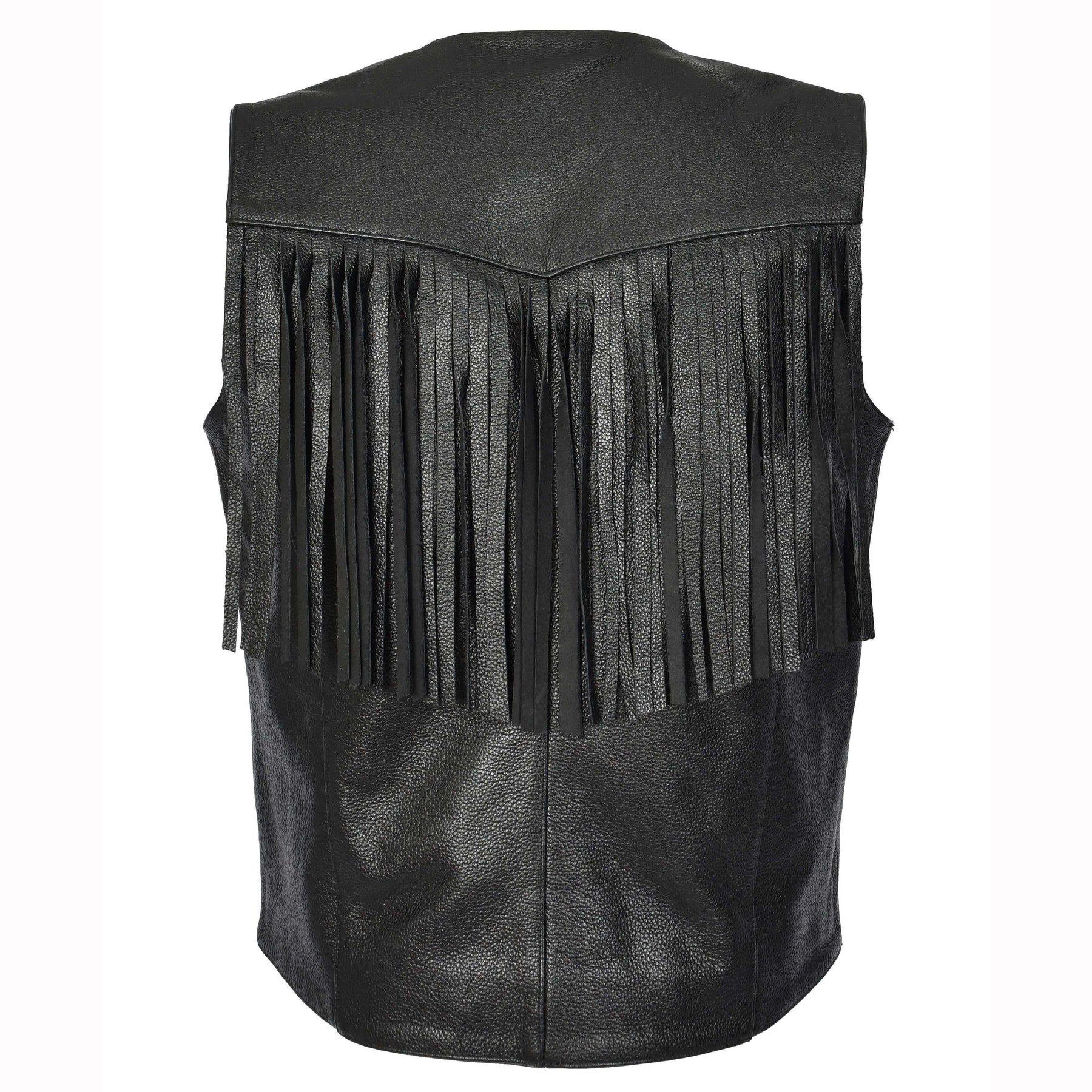 Men's Cowhide Leather Biker Waistcoat Fringe's Western Vest Warden Black