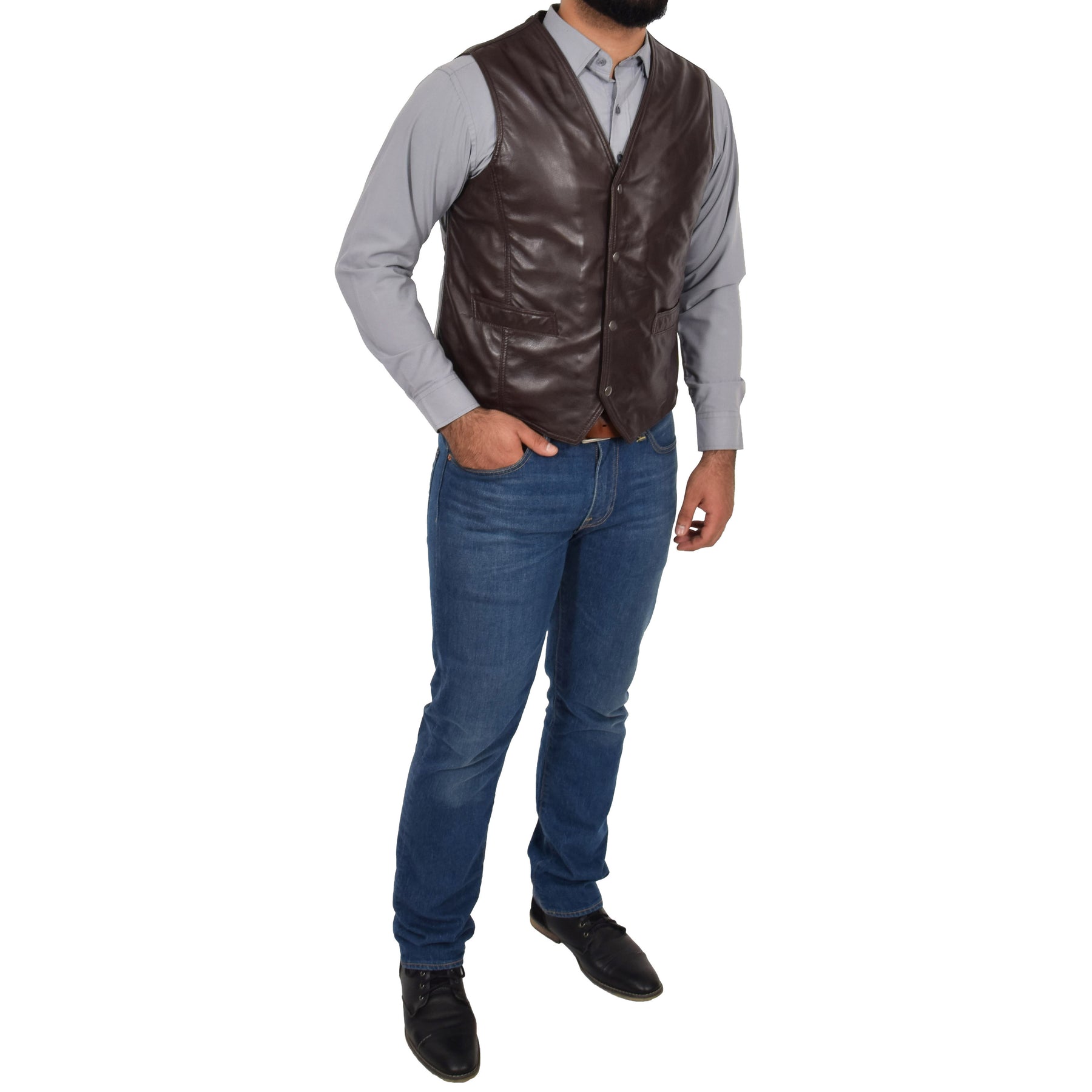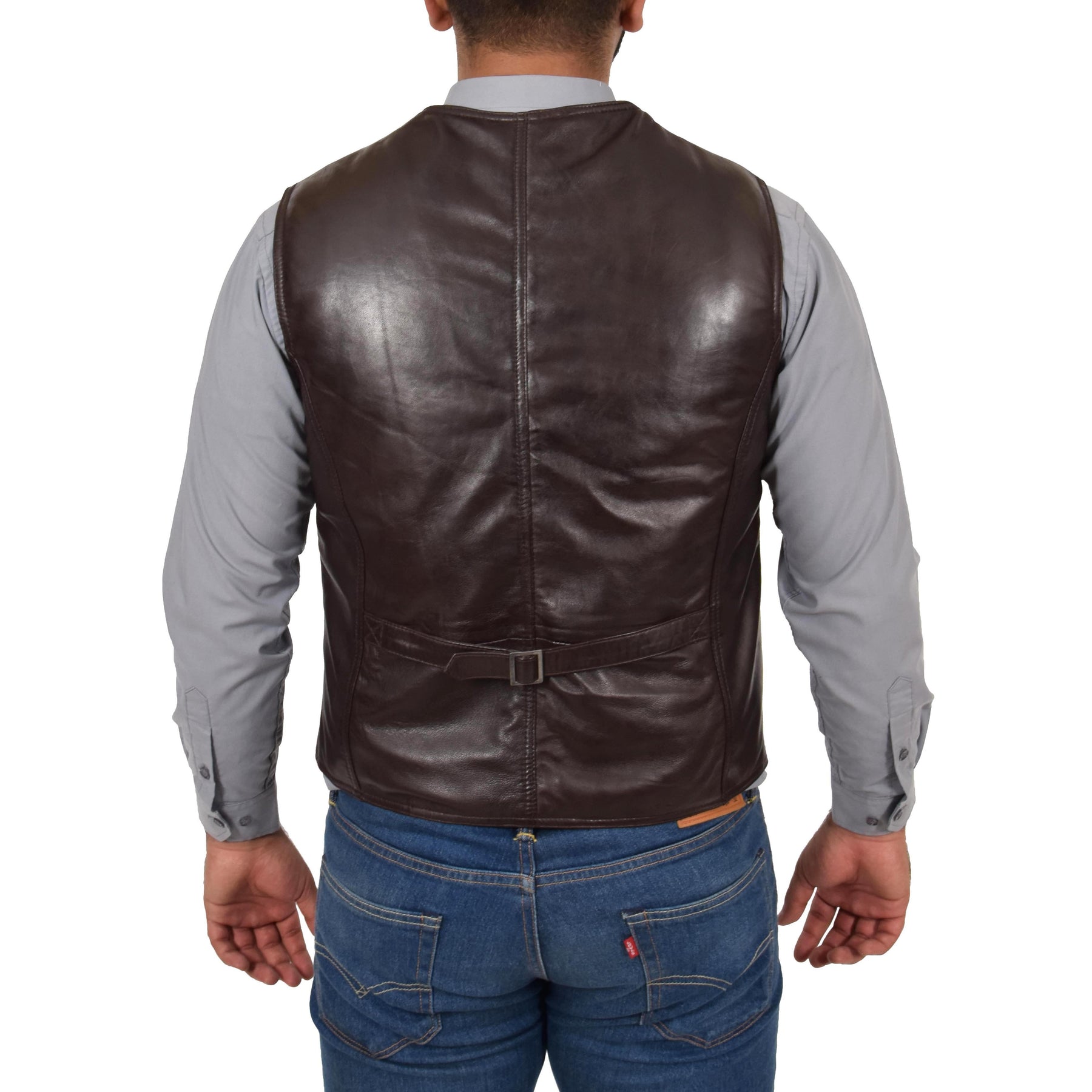 Mens Leather Traditional Waistcoat Petrelli Brown