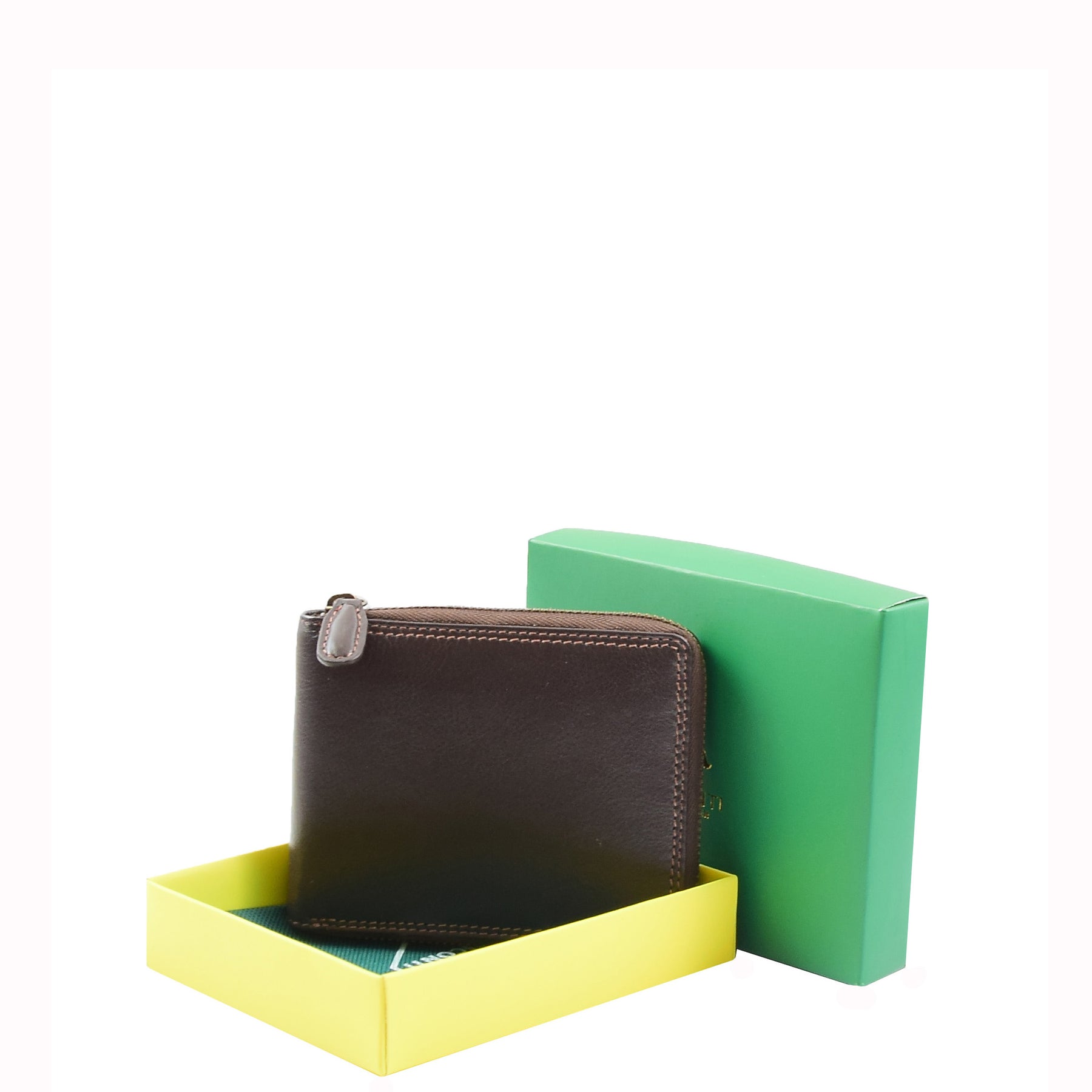 Mens Real Leather Zip Round Wallet RFID HOL414 Brown