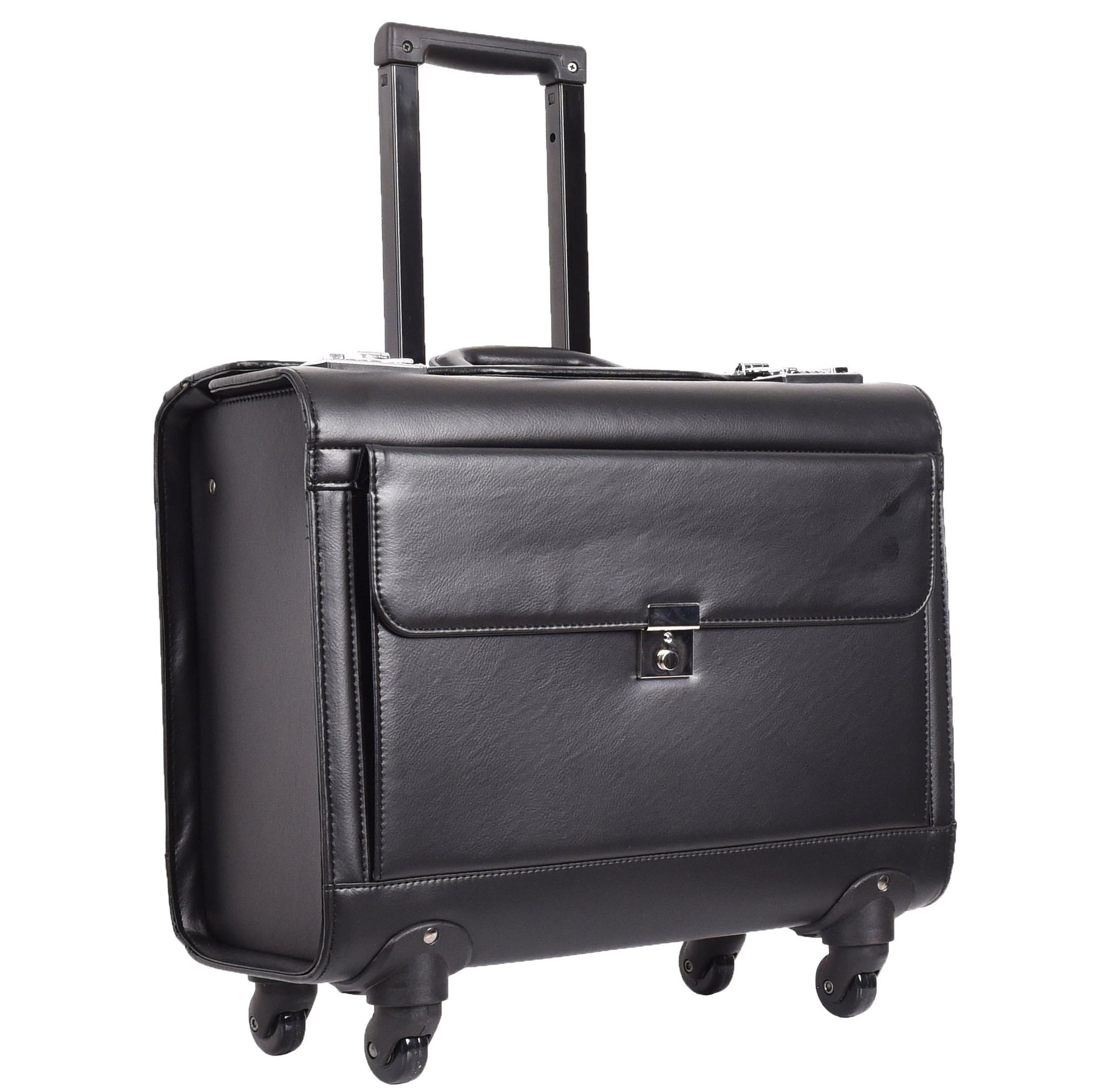 4 Wheel Spinner Leather Pilot Case Flight Carry on Cabin Bag HOL966 Black 12