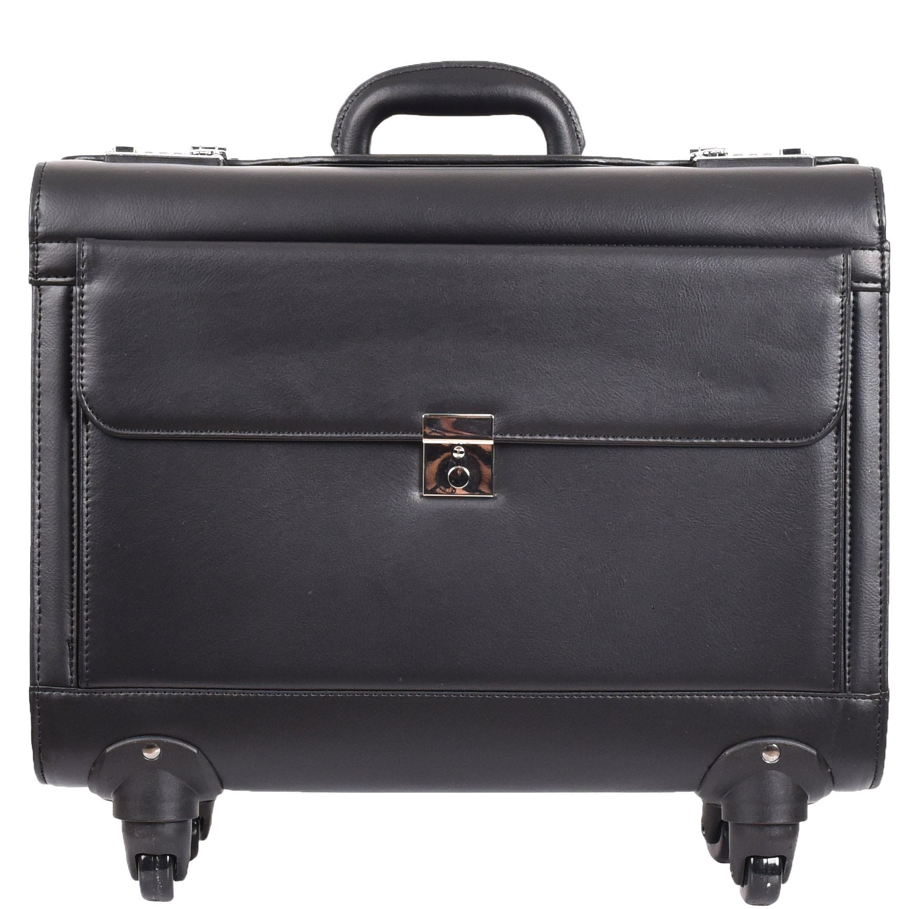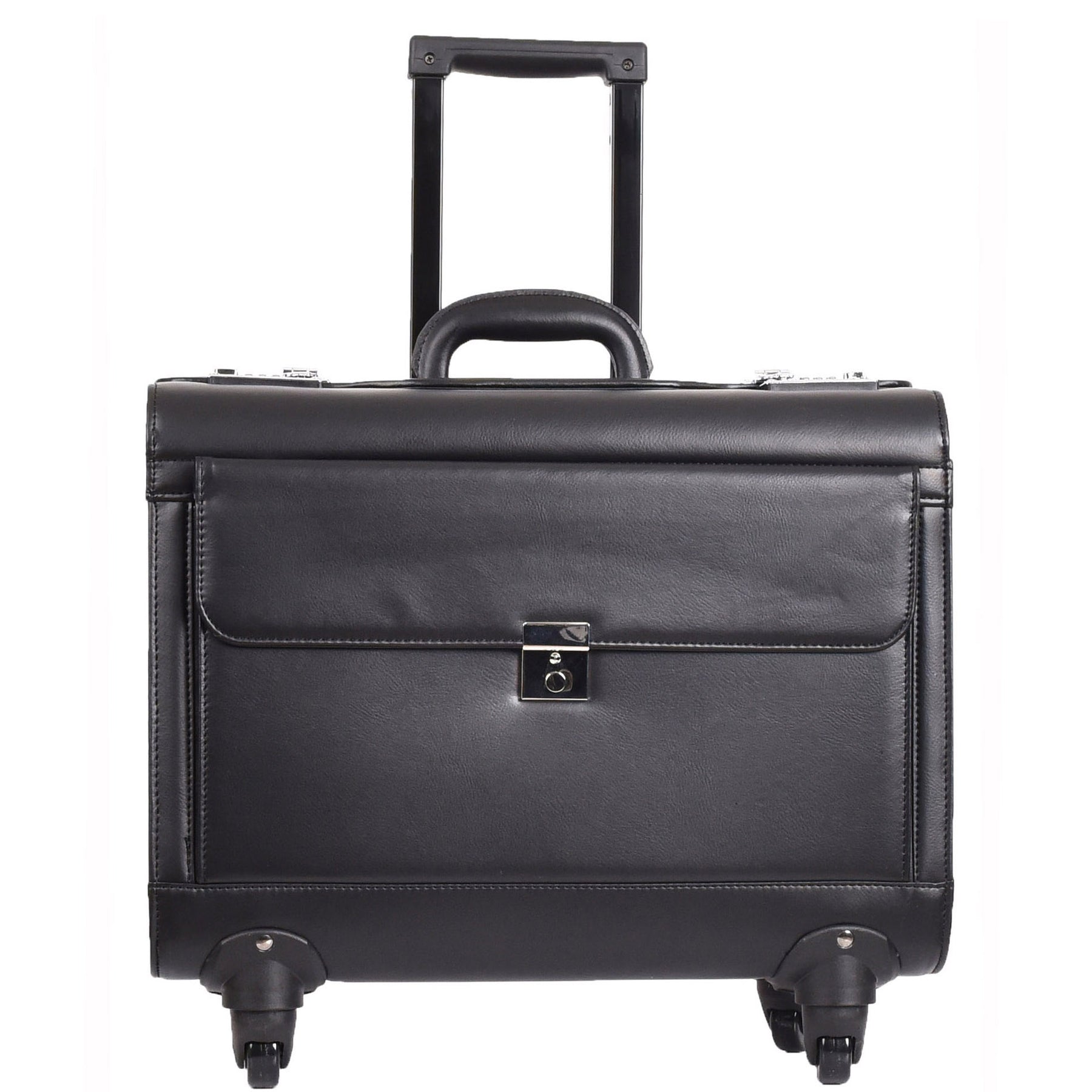 4 Wheel Spinner Leather Pilot Case Flight Carry on Cabin Bag HOL966 Black 1