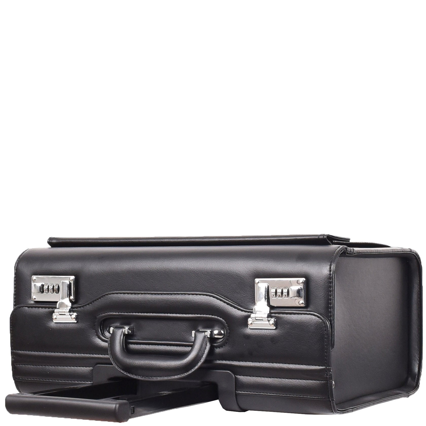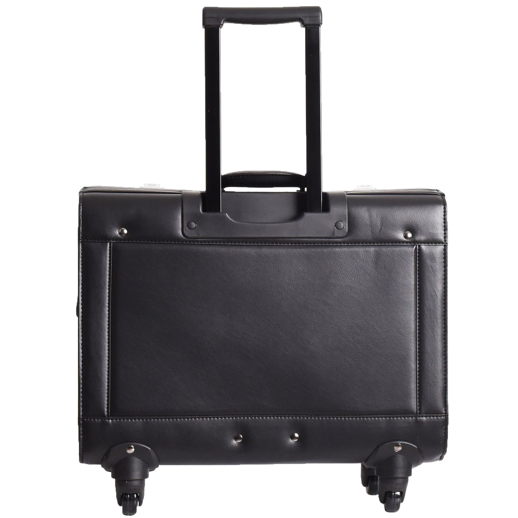 4 Wheel Spinner Leather Pilot Case Flight Carry on Cabin Bag HOL966 Black 7