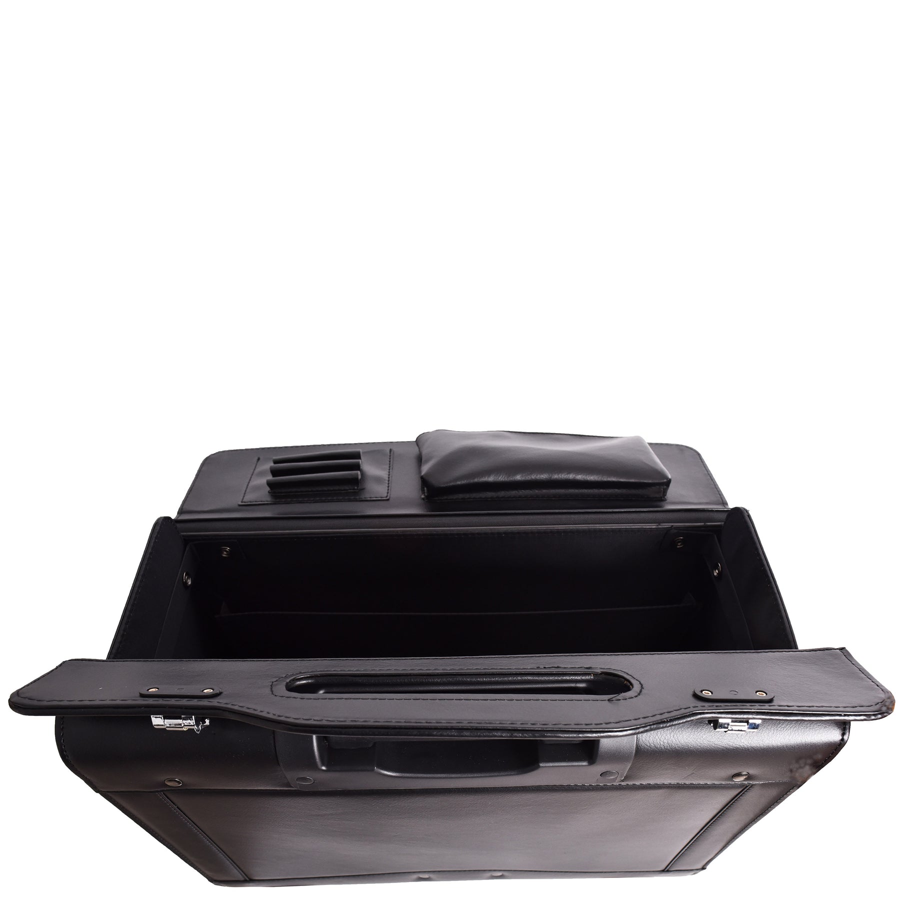 4 Wheel Spinner Leather Pilot Case Flight Carry on Cabin Bag HOL966 Black 11