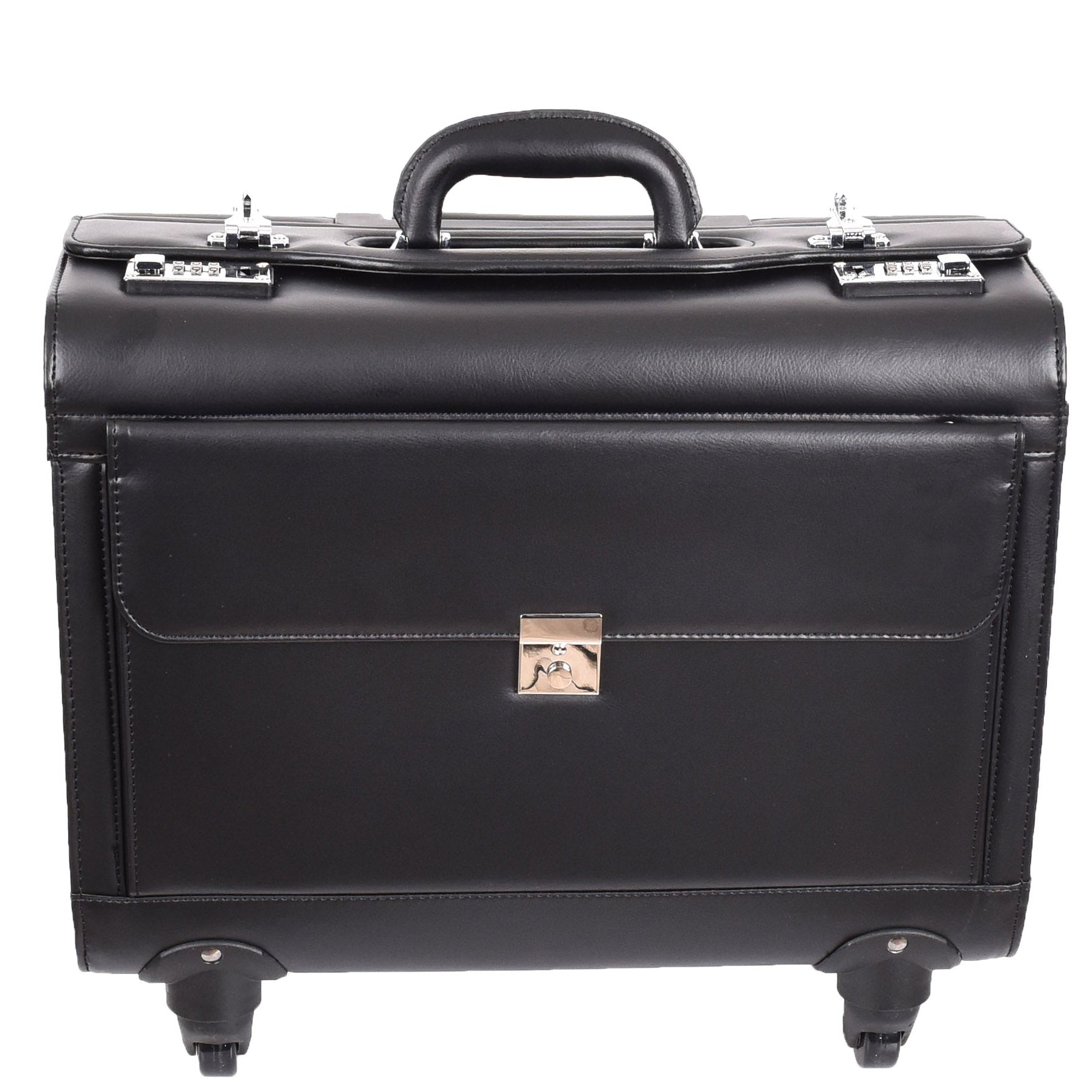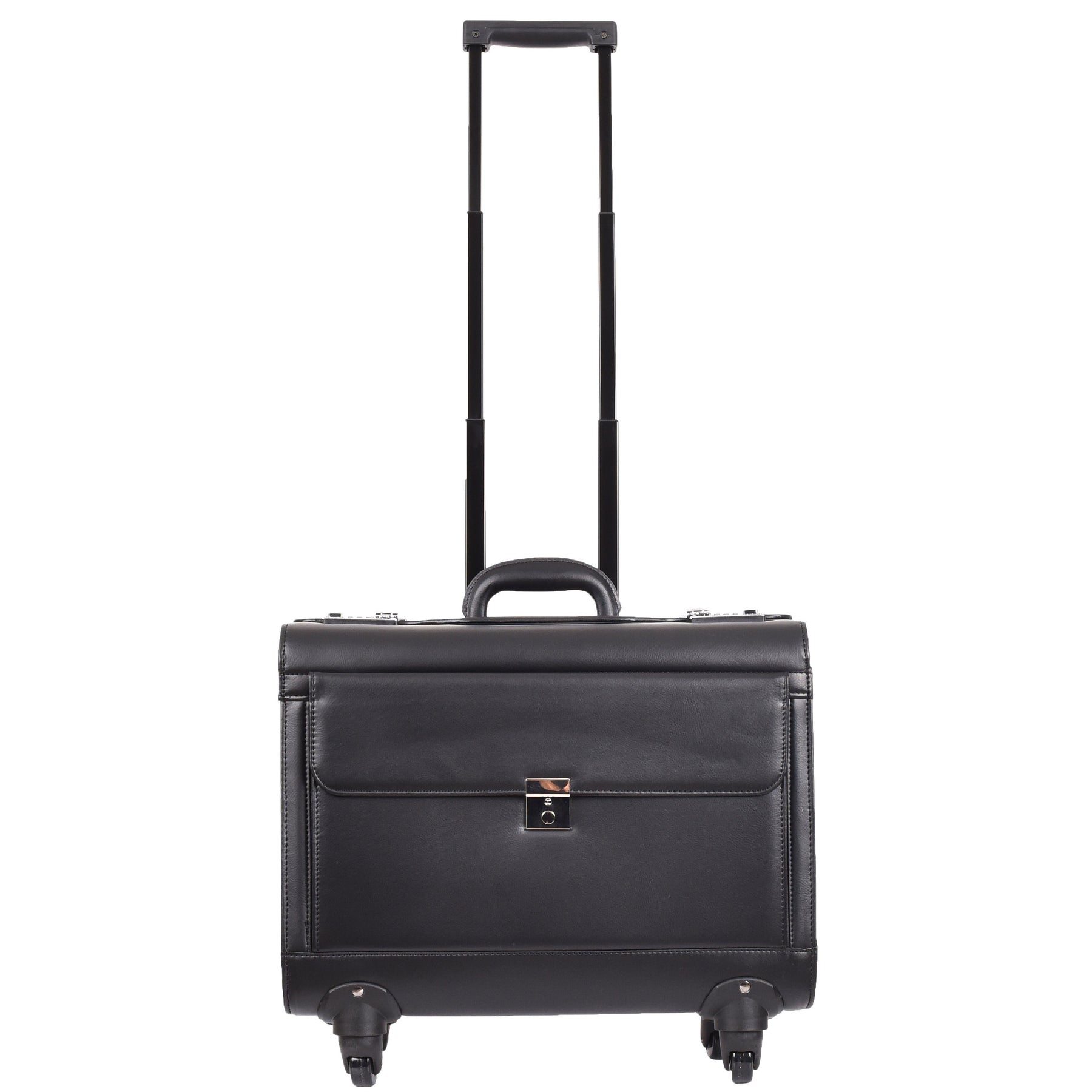 4 Wheel Spinner Leather Pilot Case Flight Carry on Cabin Bag HOL966 Black