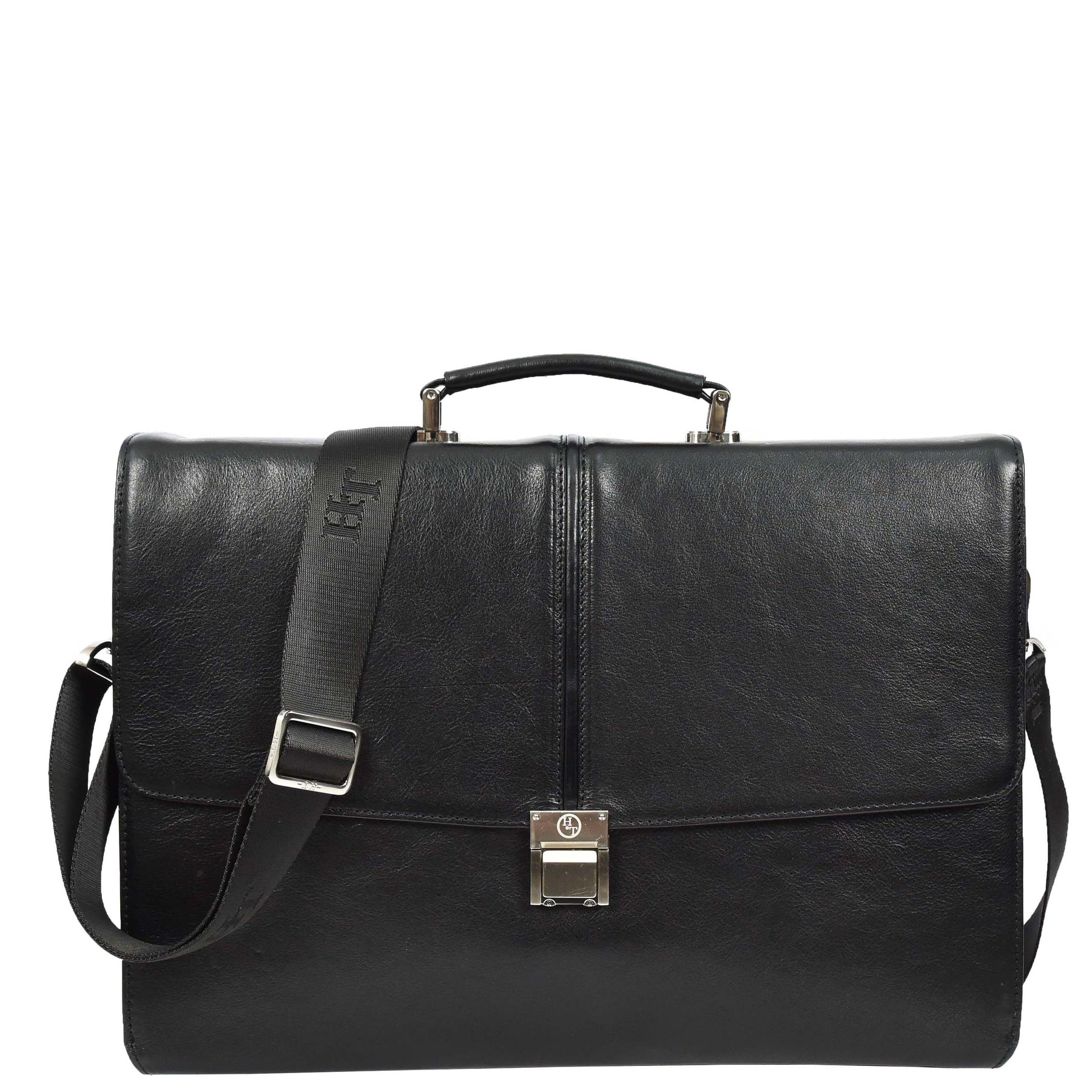 Mens Genuine Leather Briefcase Large Size Organiser Messenger Bag Erbil Black-1