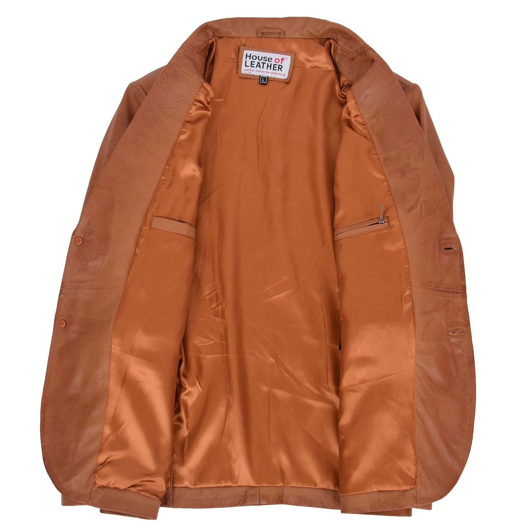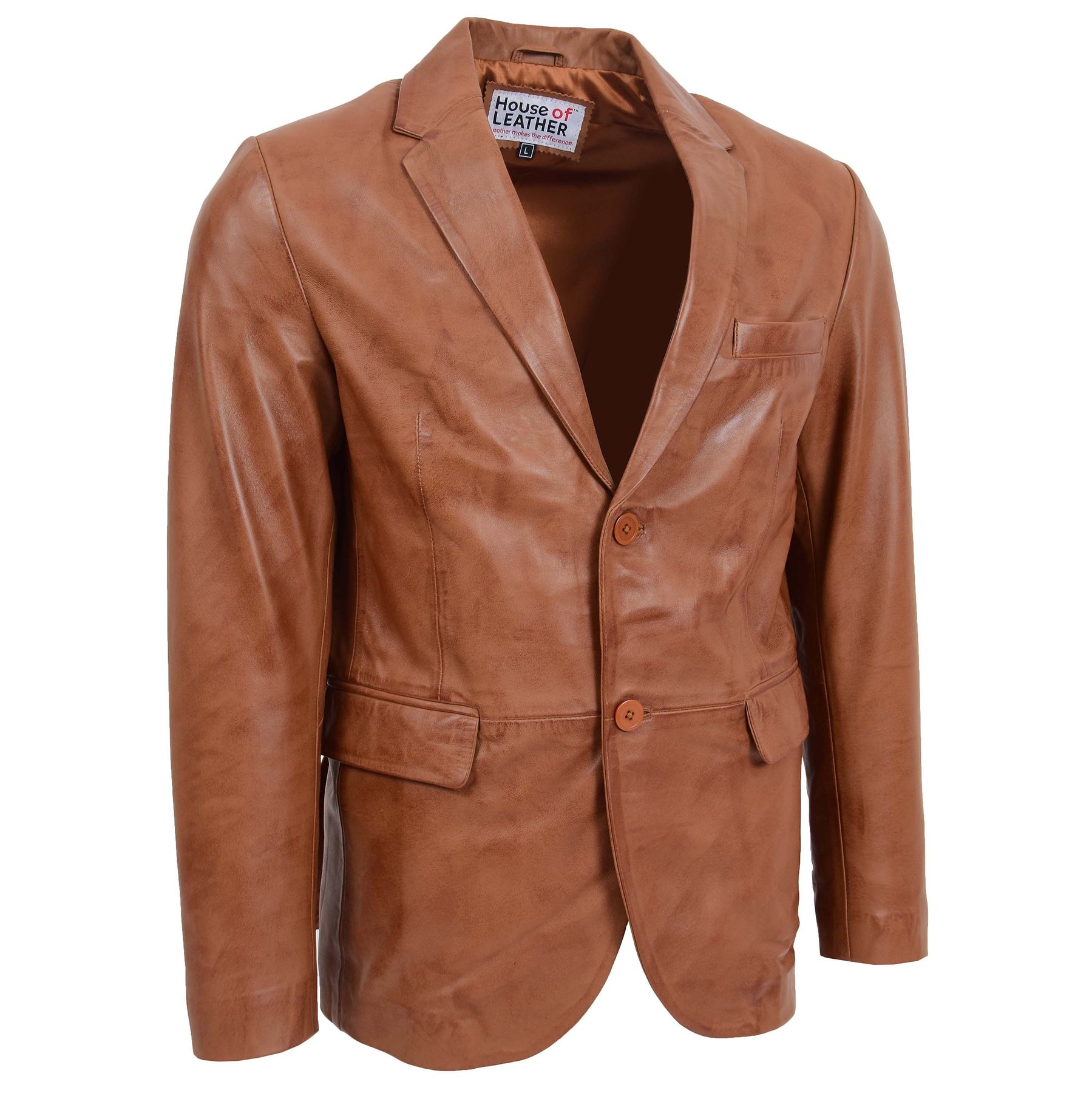 Mens Leather Blazer Two Button Jacket Zavi Tan
