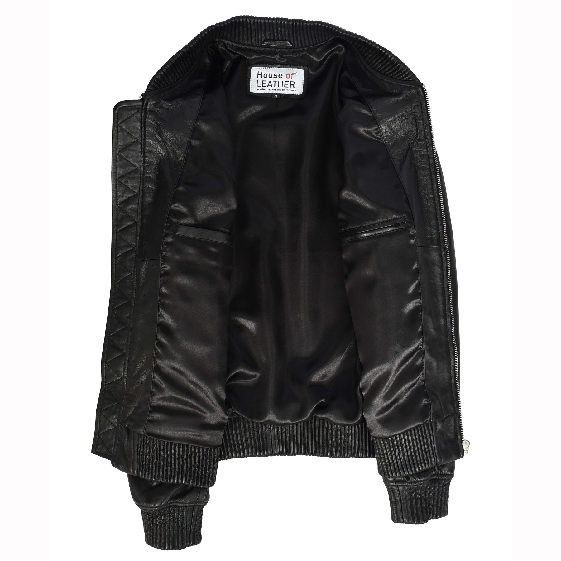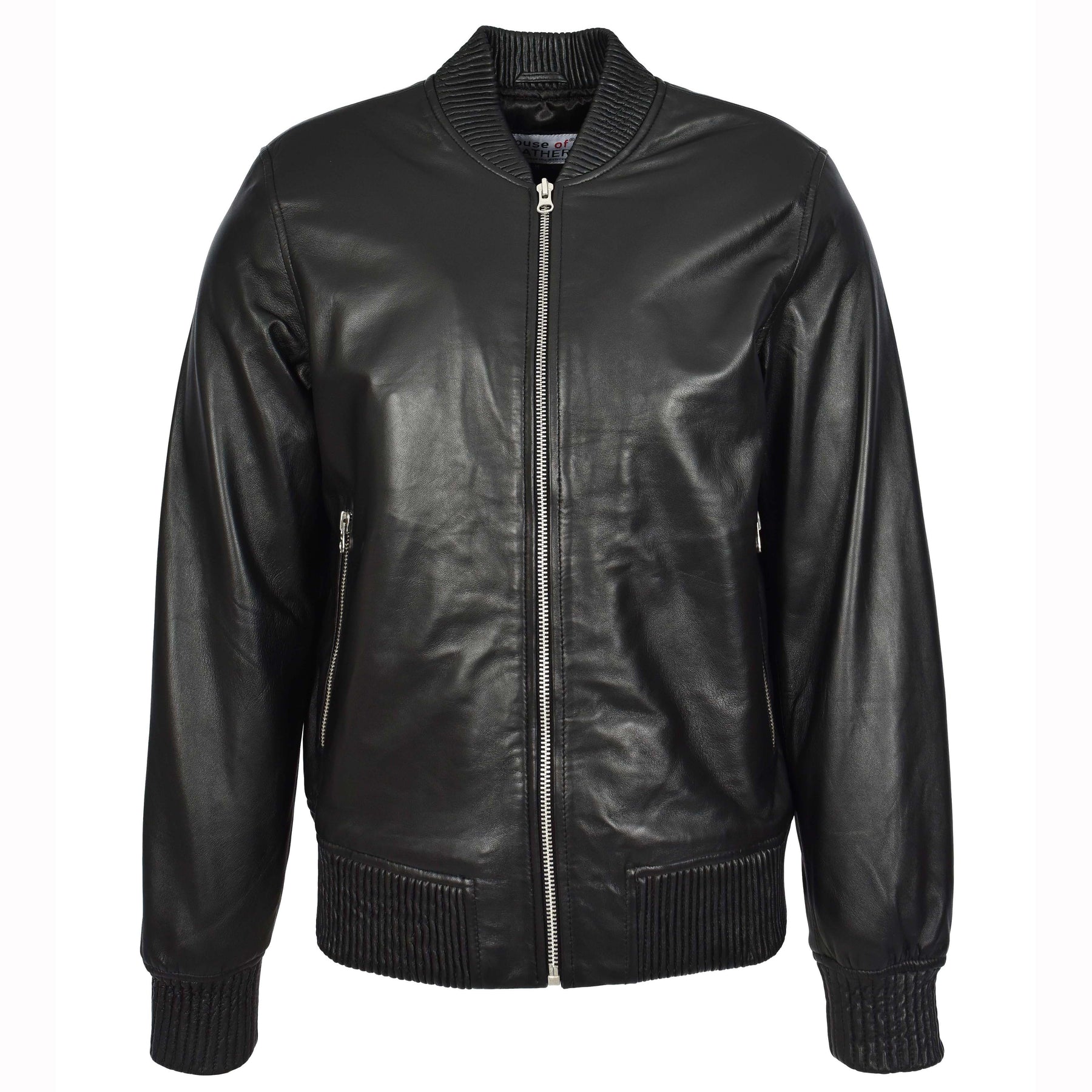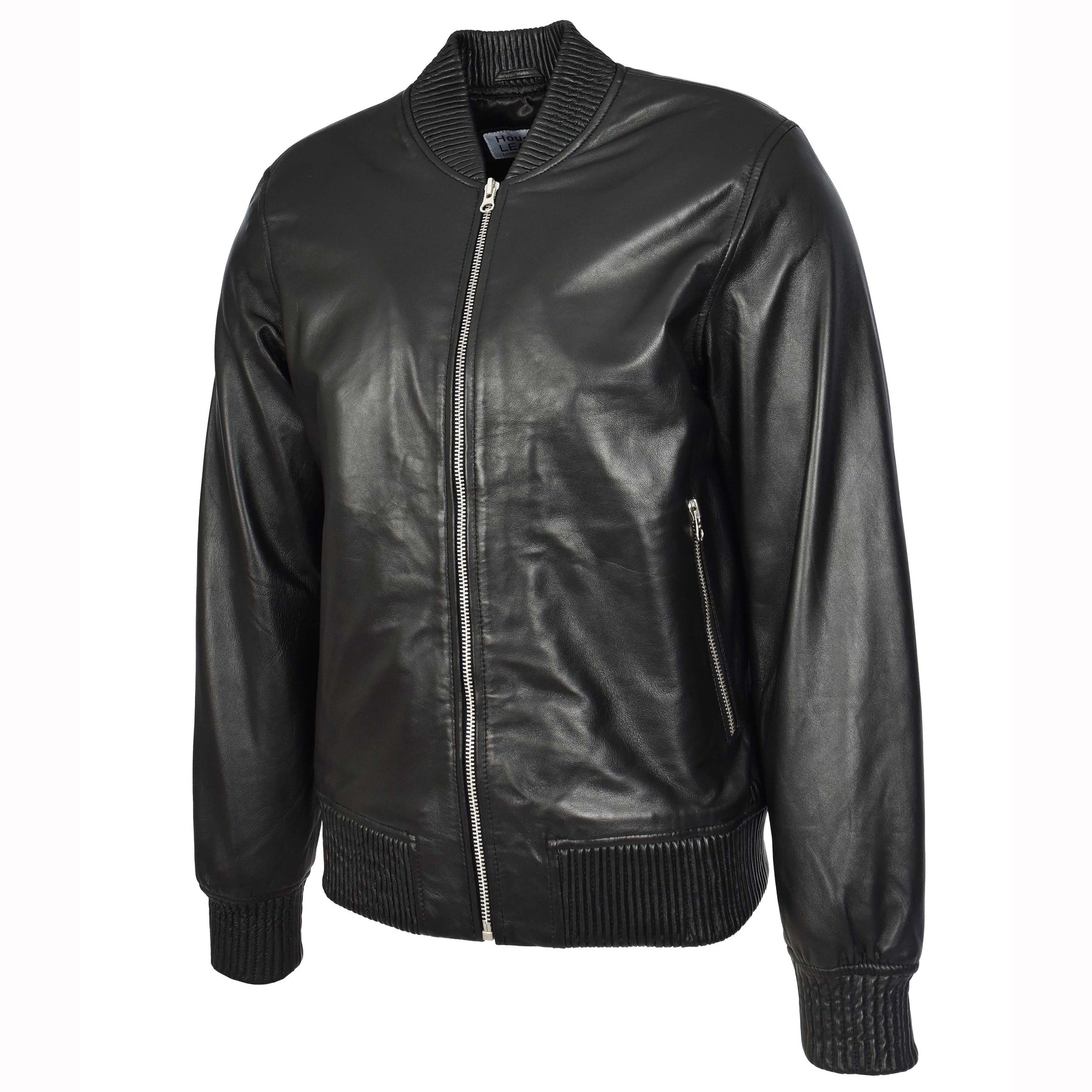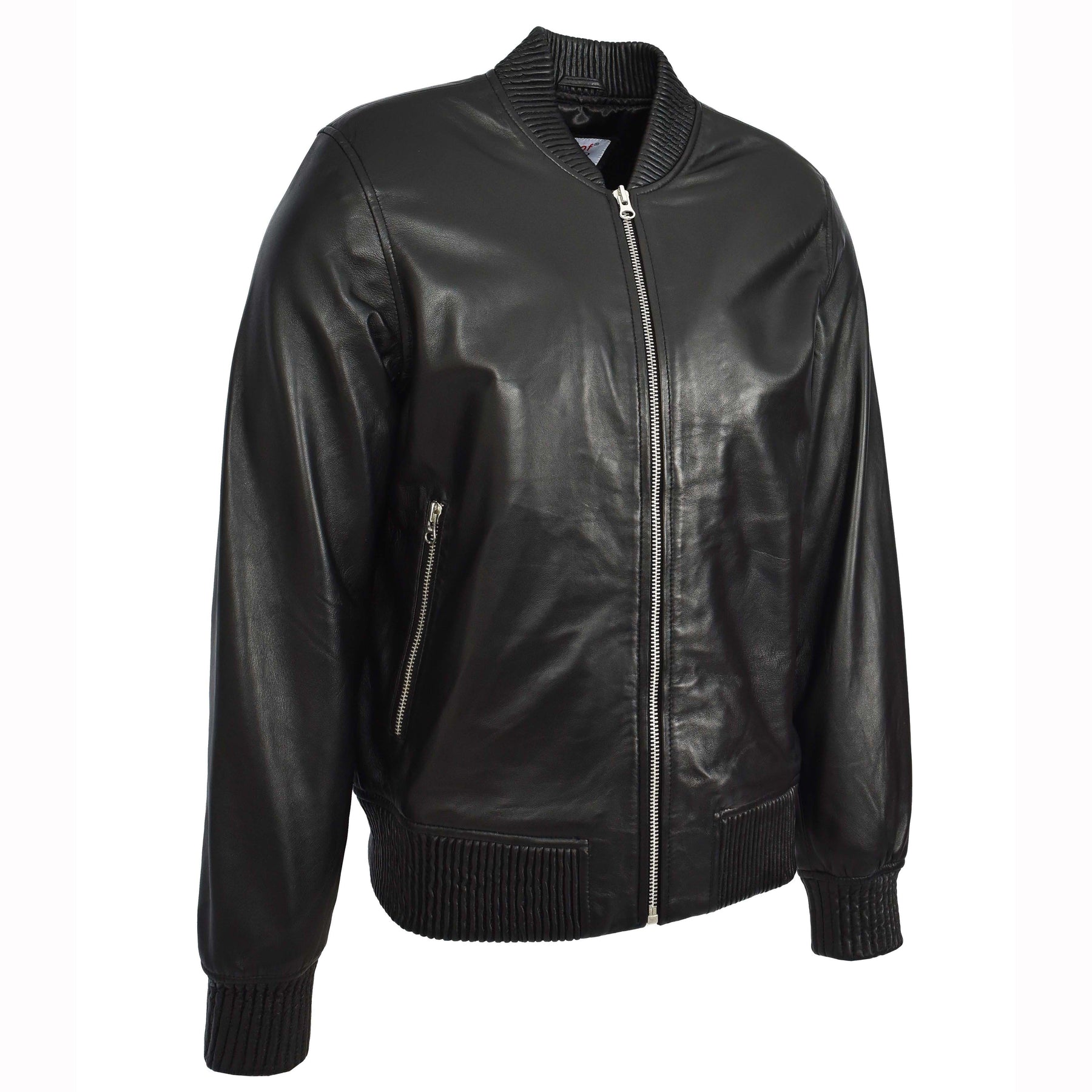 Mens Real Soft Leather Bomber Jacket MA-1 Varsity Style Torque Black