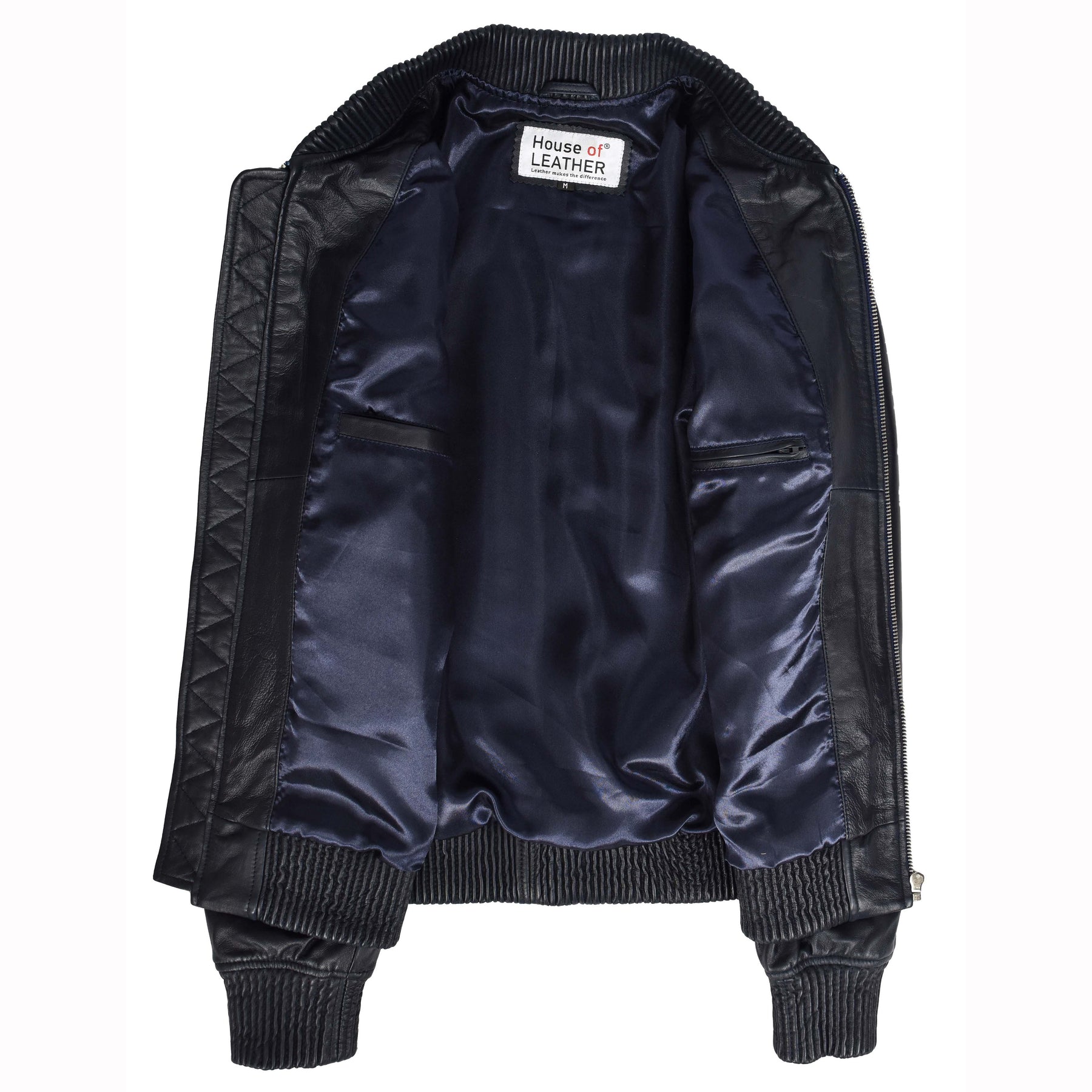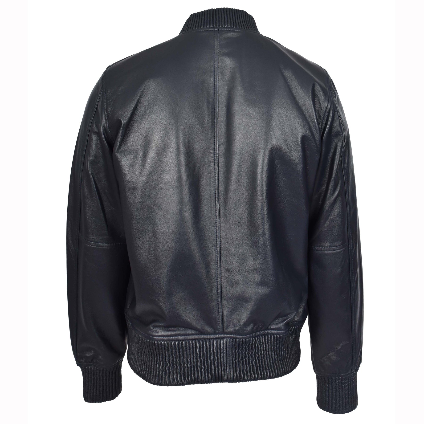 Mens Real Soft Leather Bomber Jacket MA-1 Varsity Style Torque Navy