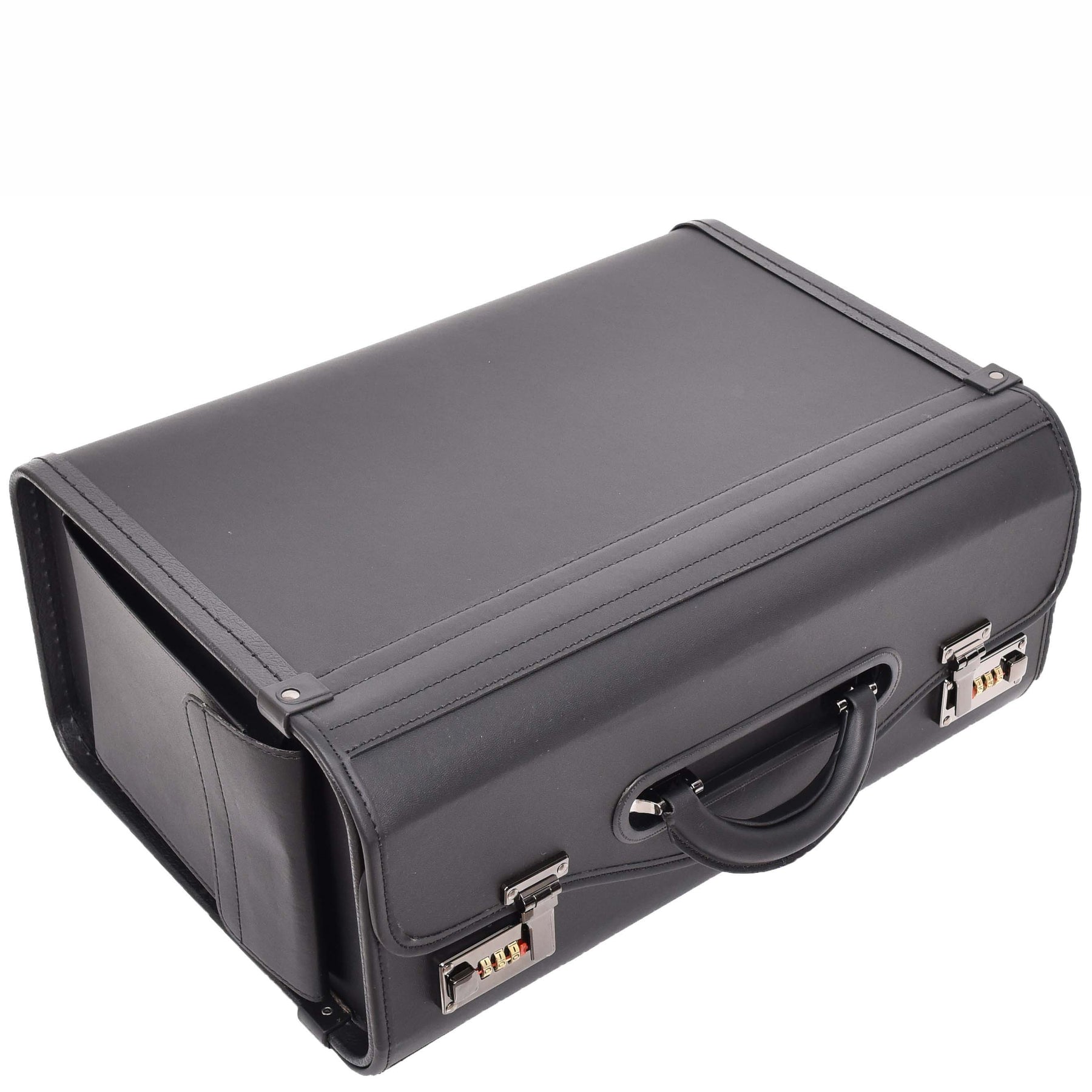 A remarkable addition in our pilot cases range, classic traditional large briefcase style bag redesigned to carry a large variety of items with total ease, this bag is made over a structured frame sides with a premium quality full grain PU faux leather and complete with premium quality fittings. It features deep large main compartment 2 external side pockets secured by velcro, top carry handle, safe and secure dual 3 digit combination locks, Inside there is one open section for a laptop, files, cards pockets and four pen slots mounted on the lid, bottom stabilizers, reinforced durable stitching to withstand the test of time.