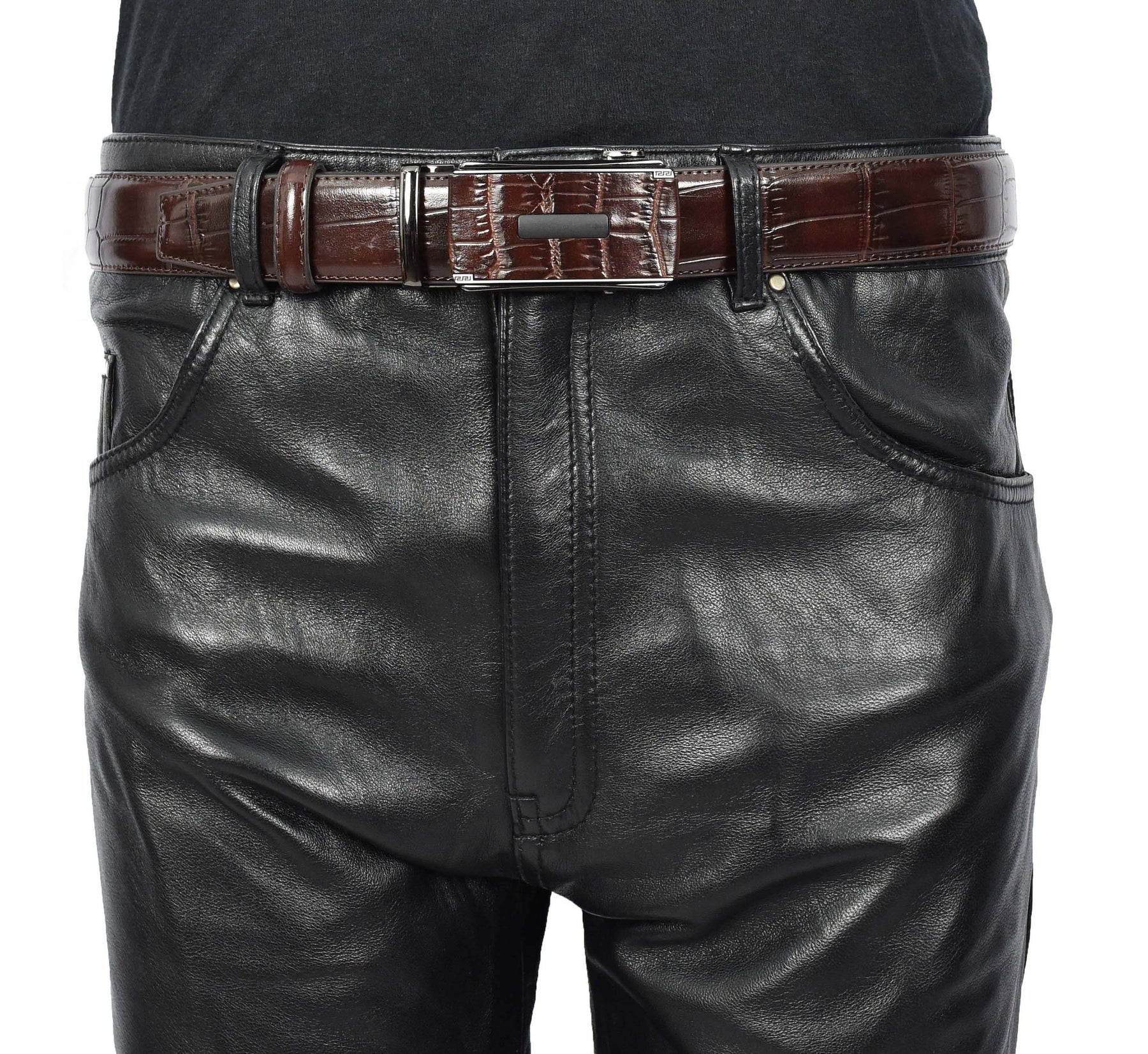 Real Leather Mens Adjustable Ratchet Buckle Belt Dress Suits Pants Every Day Wear Whistler Brown