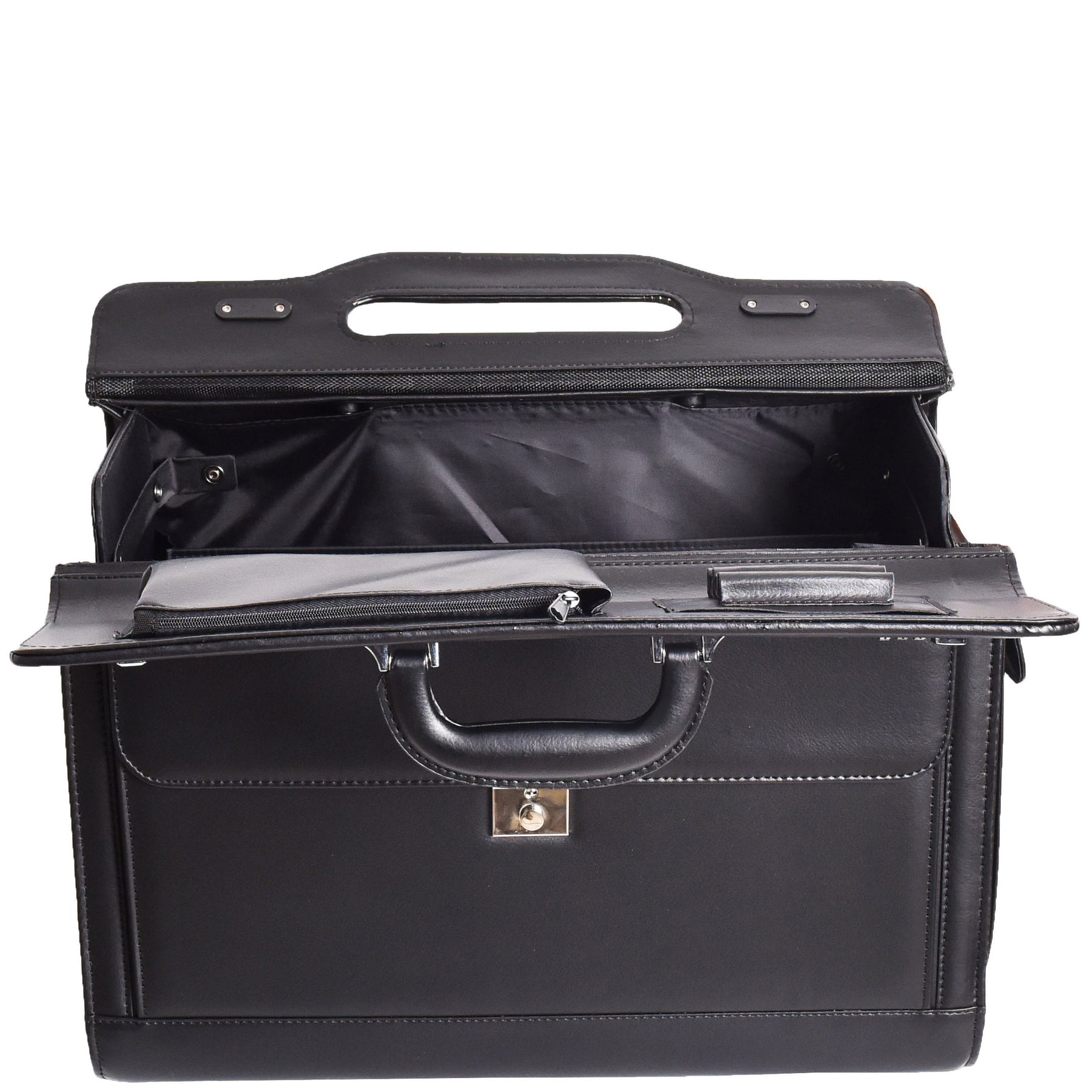 Wheeled Leather Pilot Case Flight Carry on Cabin Bag HOL691 Black 10