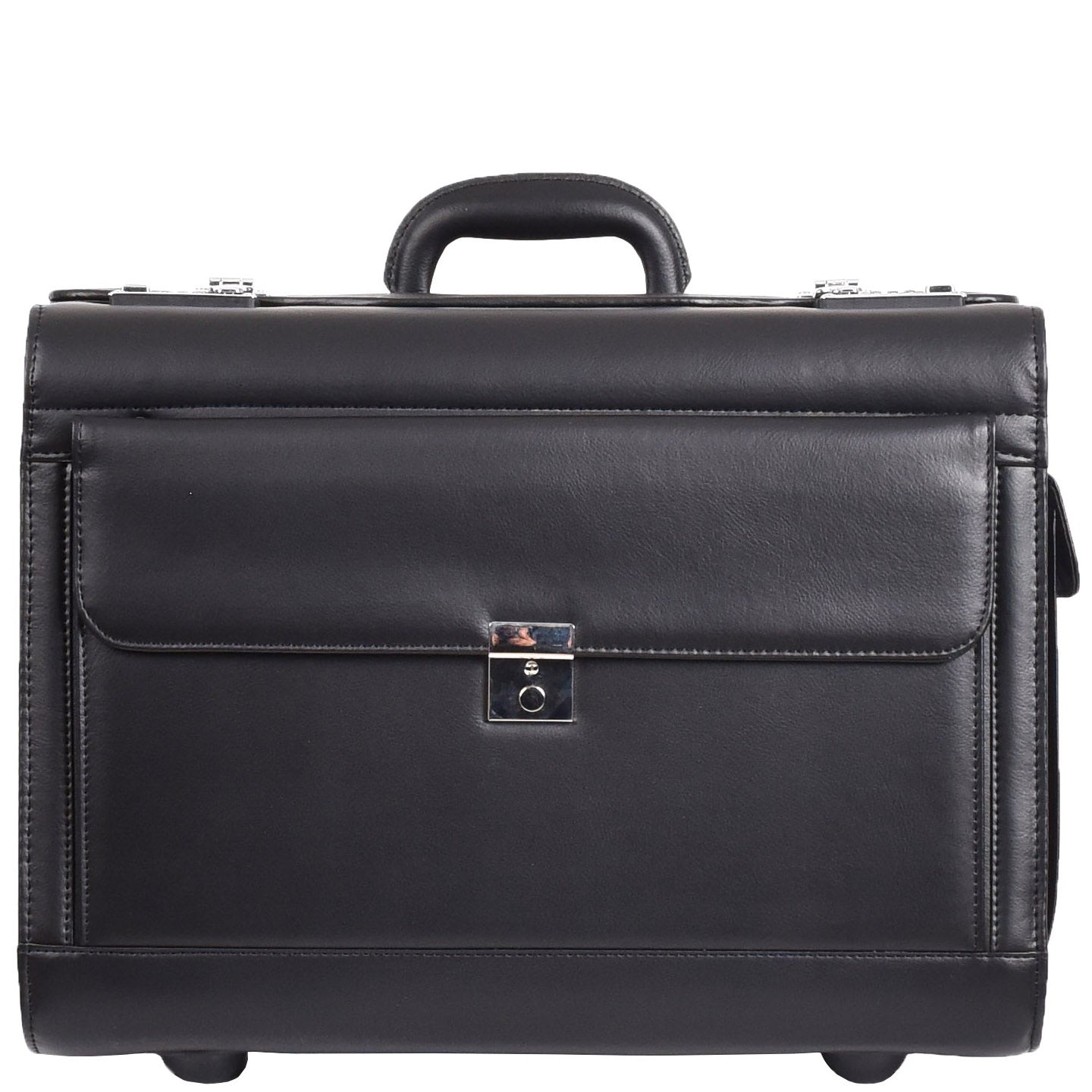 Wheeled Leather Pilot Case Flight Carry on Cabin Bag HOL691 Black 1