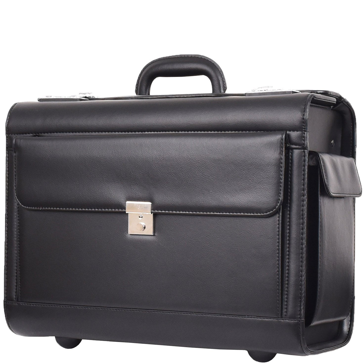 Wheeled Faux Leather Pilot Case Flight Carry on Cabin Bag HOL691 Black