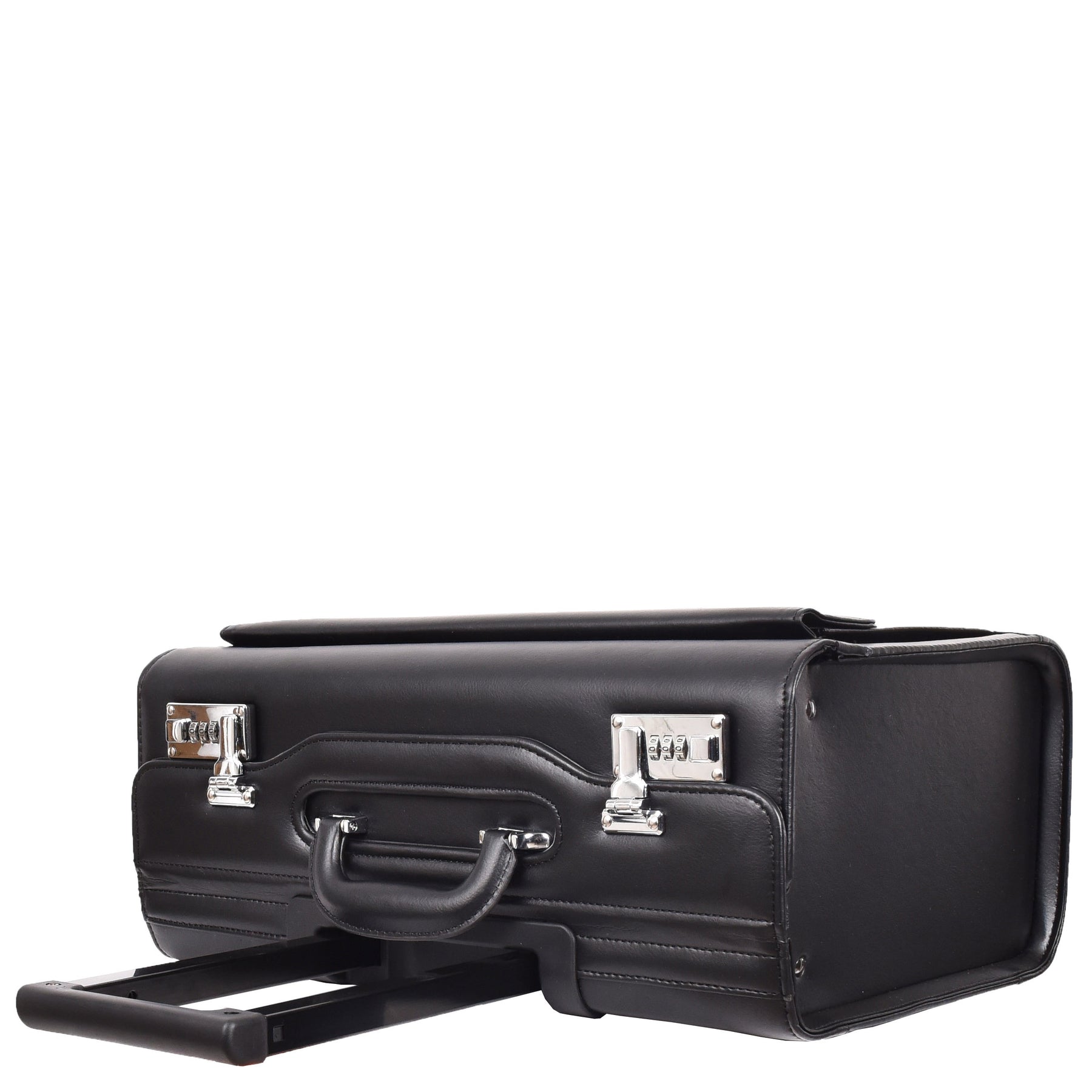 Wheeled Leather Pilot Case Flight Carry on Cabin Bag HOL691 Black 4