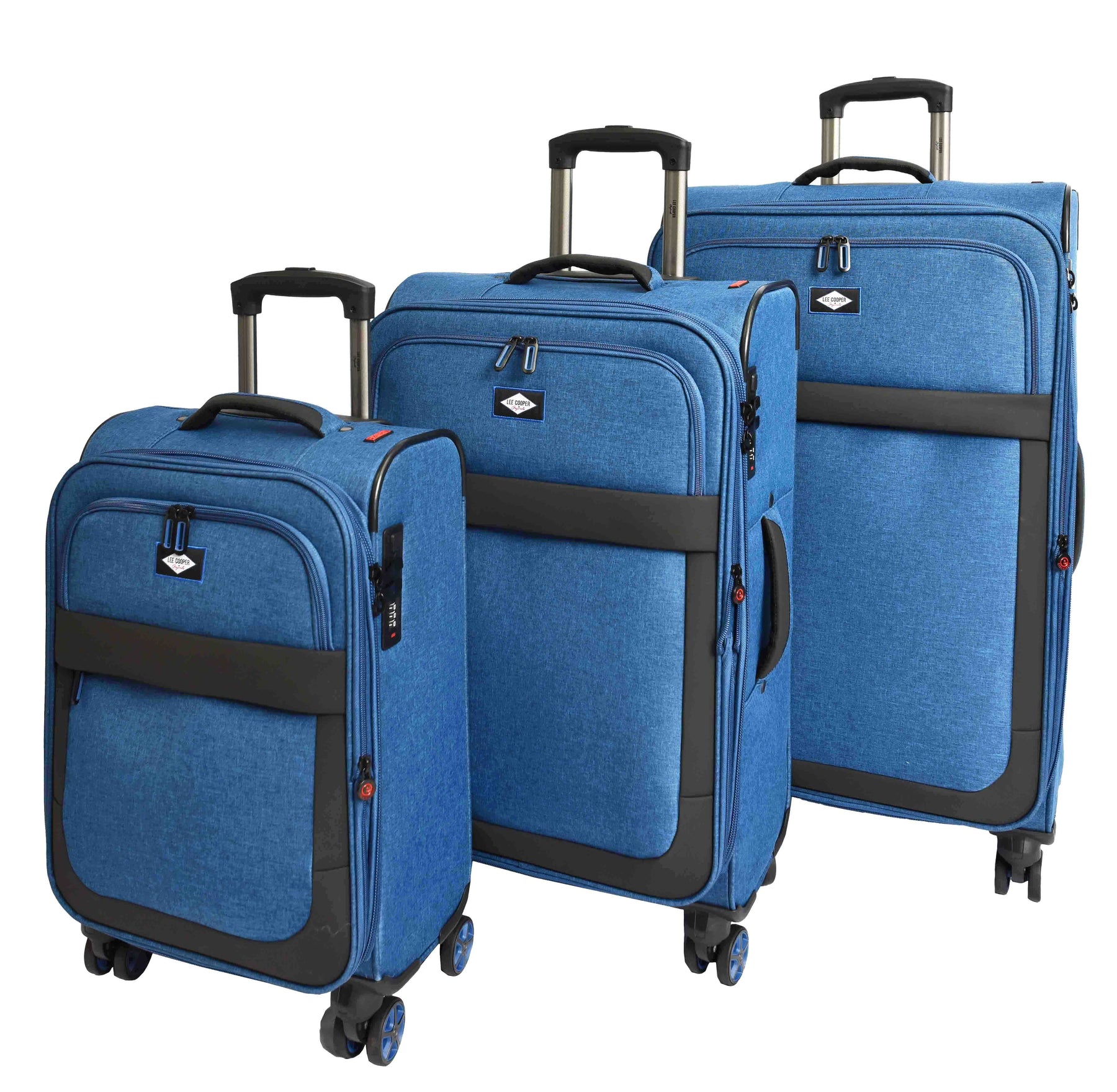 A versatile 3-piece luggage collection designed to meet every travel need. Available in a choice of sophisticated colours including grey, khaki green, and navy, this set is as fashionable as it is functional. Each suitcase features a durable soft-shell exterior with a textured fabric finish, complemented by smart dark contrast trim for a refined, contemporary look. The set includes three sizes to accommodate everything from a weekend getaway to an extended holiday. Smooth-rolling multi-directional spinner wheels ensure effortless manoeuvrability through airports and hotels, while the sturdy telescopic aluminium handle provides comfortable control. Each case is fitted with a combination lock for added security, and the expandable design gives you extra packing capacity when you need it most. Multiple exterior zip pockets offer convenient access to travel essentials, keeping you organised on the go.