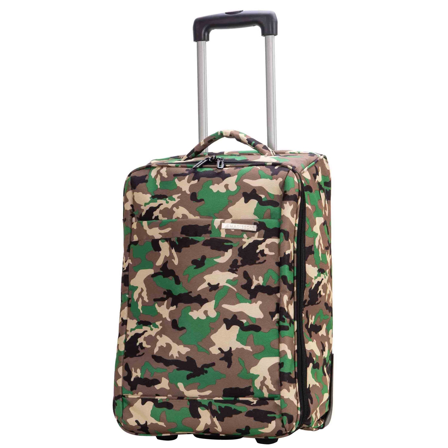 Soft 2 Wheel Cabin Luggage Printed Suitcase, a lightweight and eye-catching travel companion available in a range of bold designs including vibrant butterfly print, striking marble effect, and classic camouflage. Whether you are heading off on a city break or a weekend getaway, this compact cabin-sized suitcase is designed to keep your essentials organised and close at hand. The soft-shell construction keeps the bag lightweight, making it easy to lift into overhead compartments, while the smooth twin wheels and extendable aluminium trolley handle ensure effortless manoeuvring through busy airports and terminals. A sturdy top carry handle provides an additional option for short lifts. The main zipped compartment offers ample packing space, complemented by a front zip pocket for quick-access storage of travel documents and smaller items. With its distinctive printed exterior, this suitcase is easy to spot on any luggage rack. A practical and fashionable choice for frequent flyers and casual travellers alike.