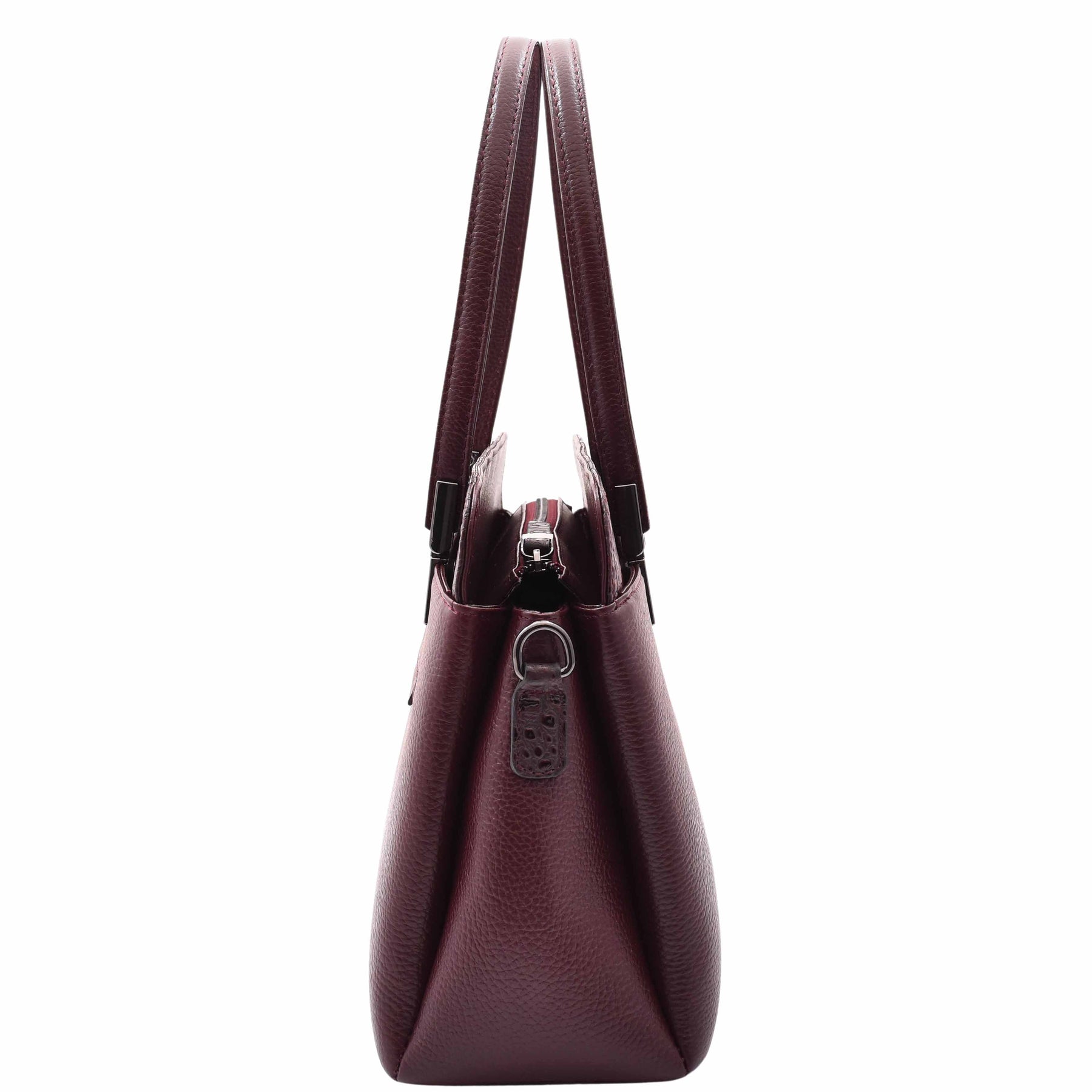 Real Leather Elegant Tote Zip Medium Shoulder Bag Edna Burgundy