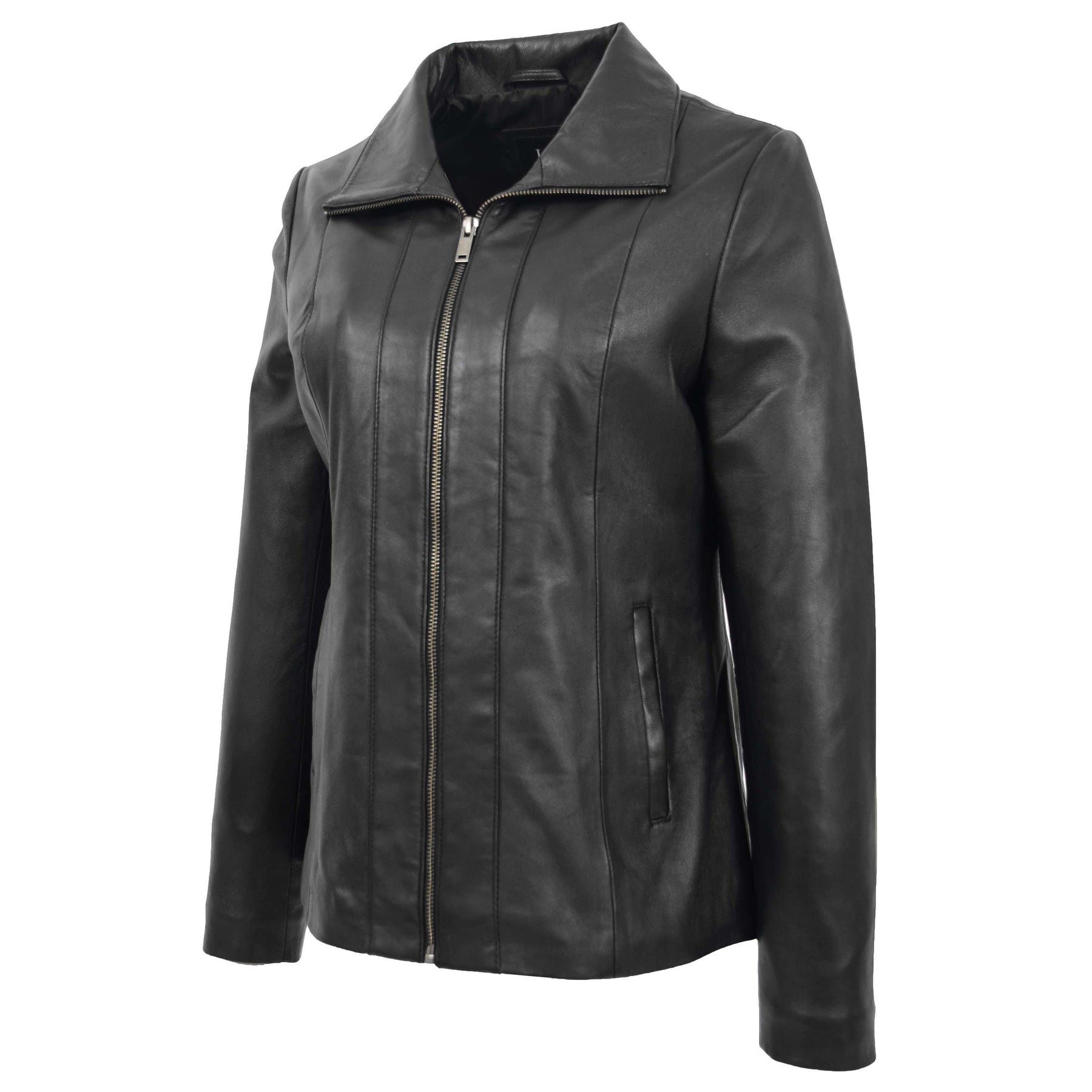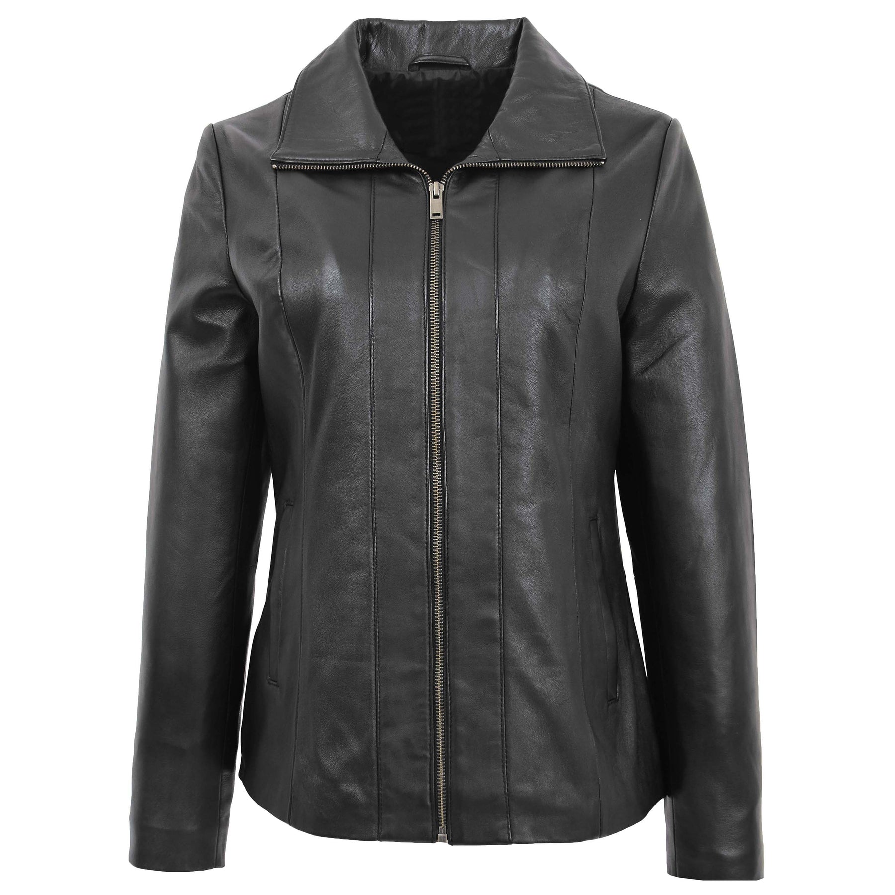 Womens Classic Zip Fastening Leather Jacket Julia Black 5