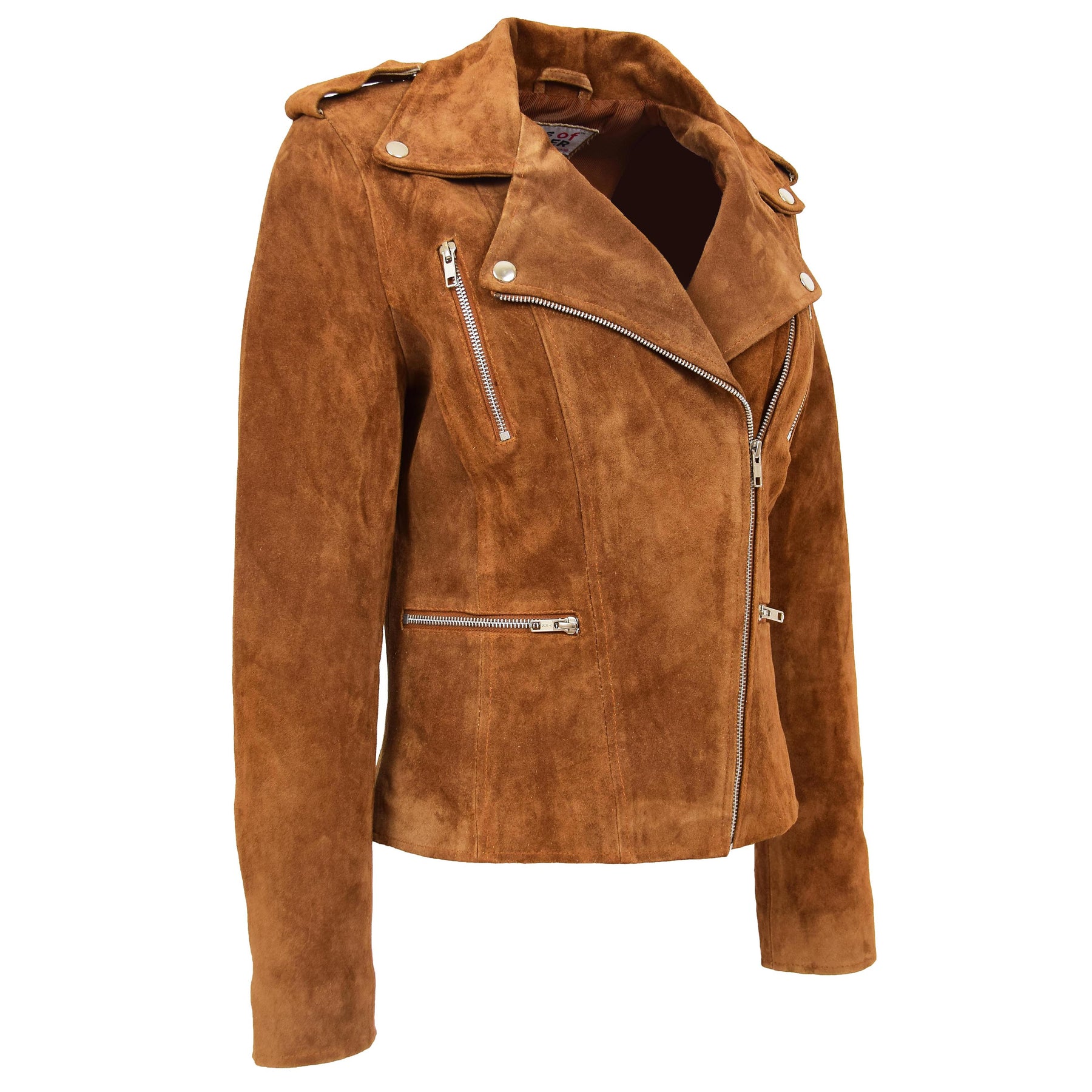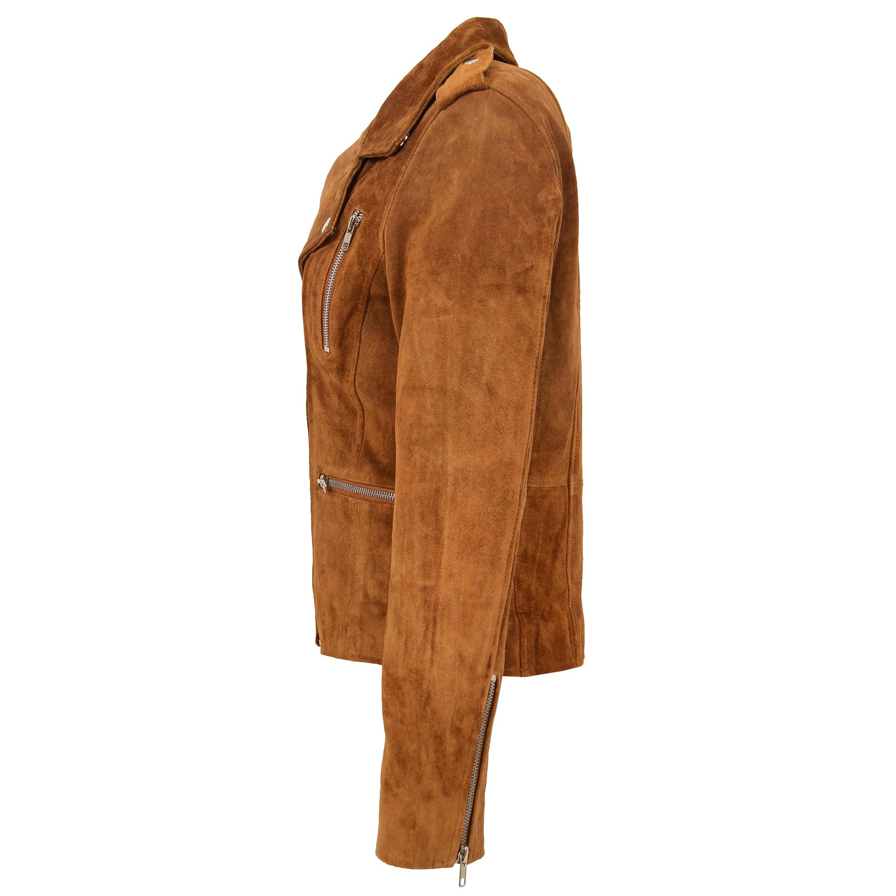 Womens Suede Biker Style Zip Jacket Skylar Tan 6