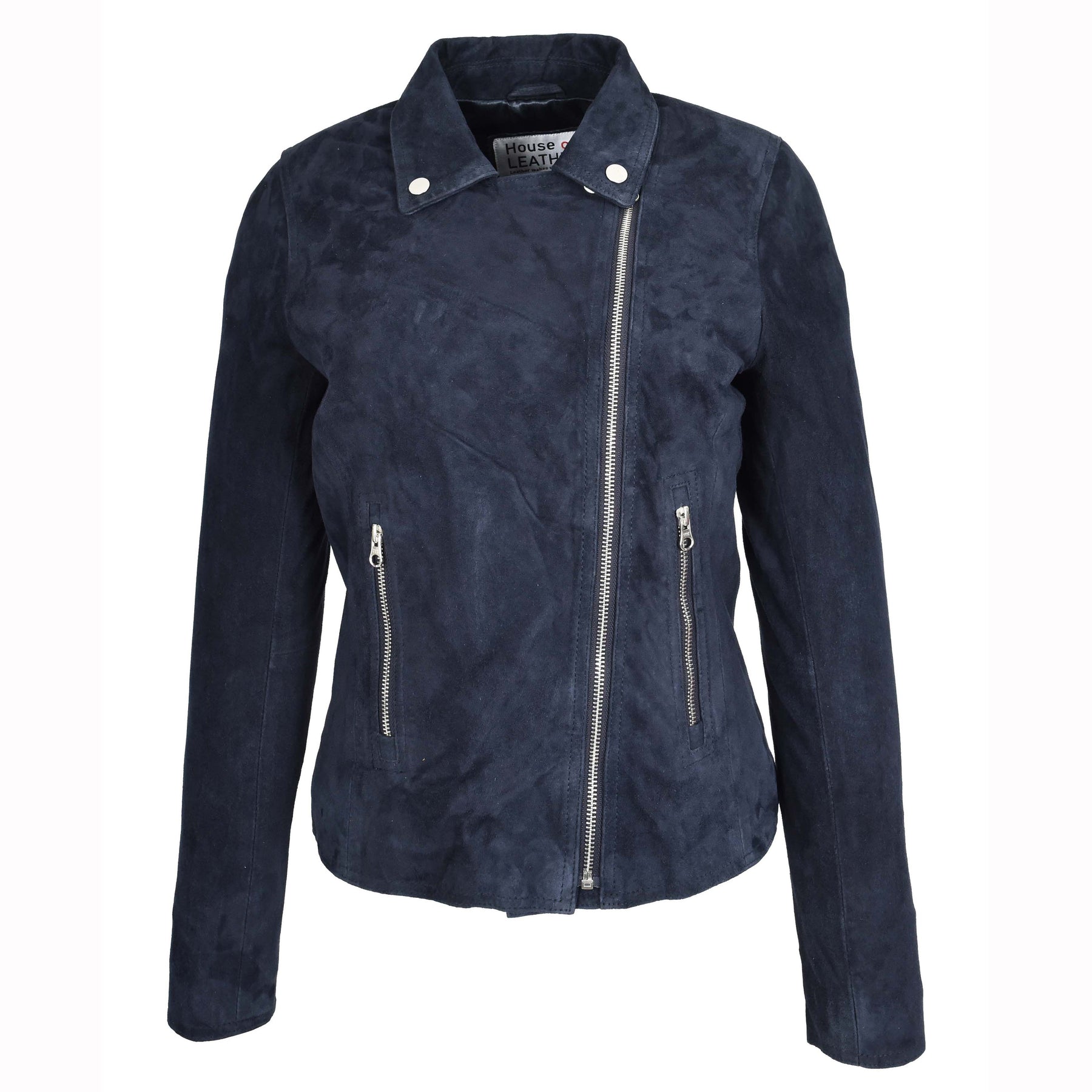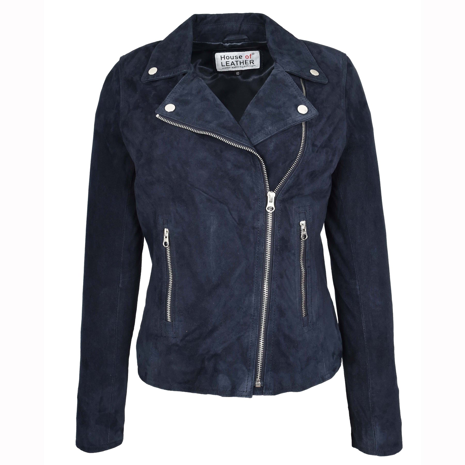 Women's Genuine Goat Suede Biker Jacket Lola Navy Blue