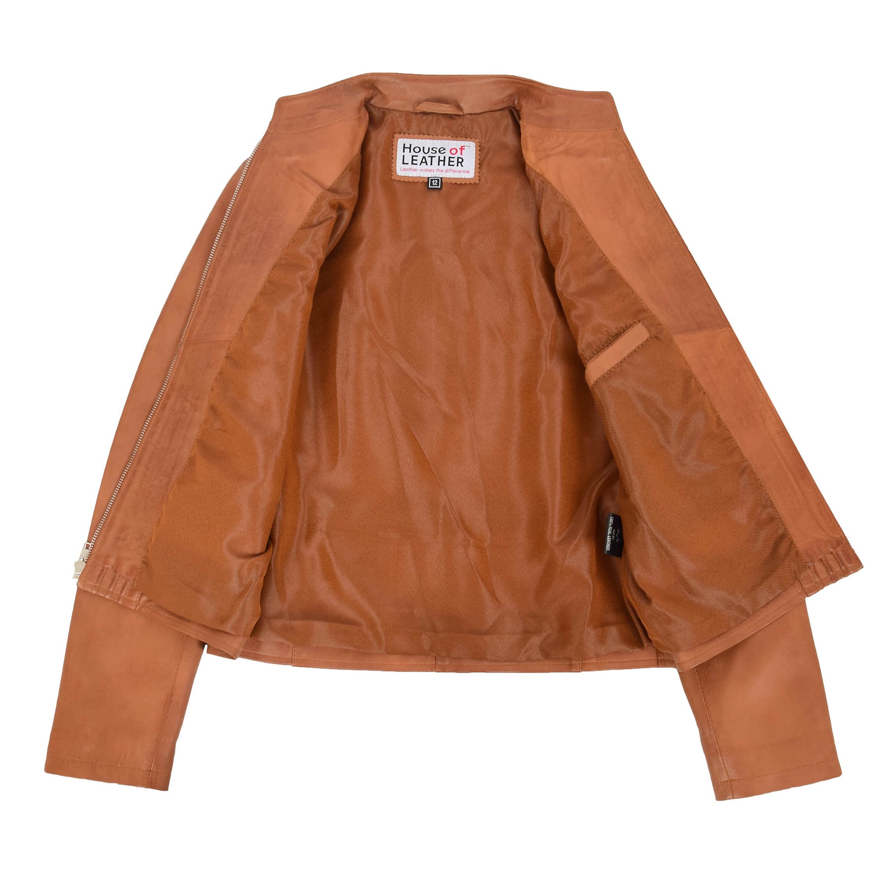 Womens Leather Casual Standing Collar Jacket Ivy Tan
