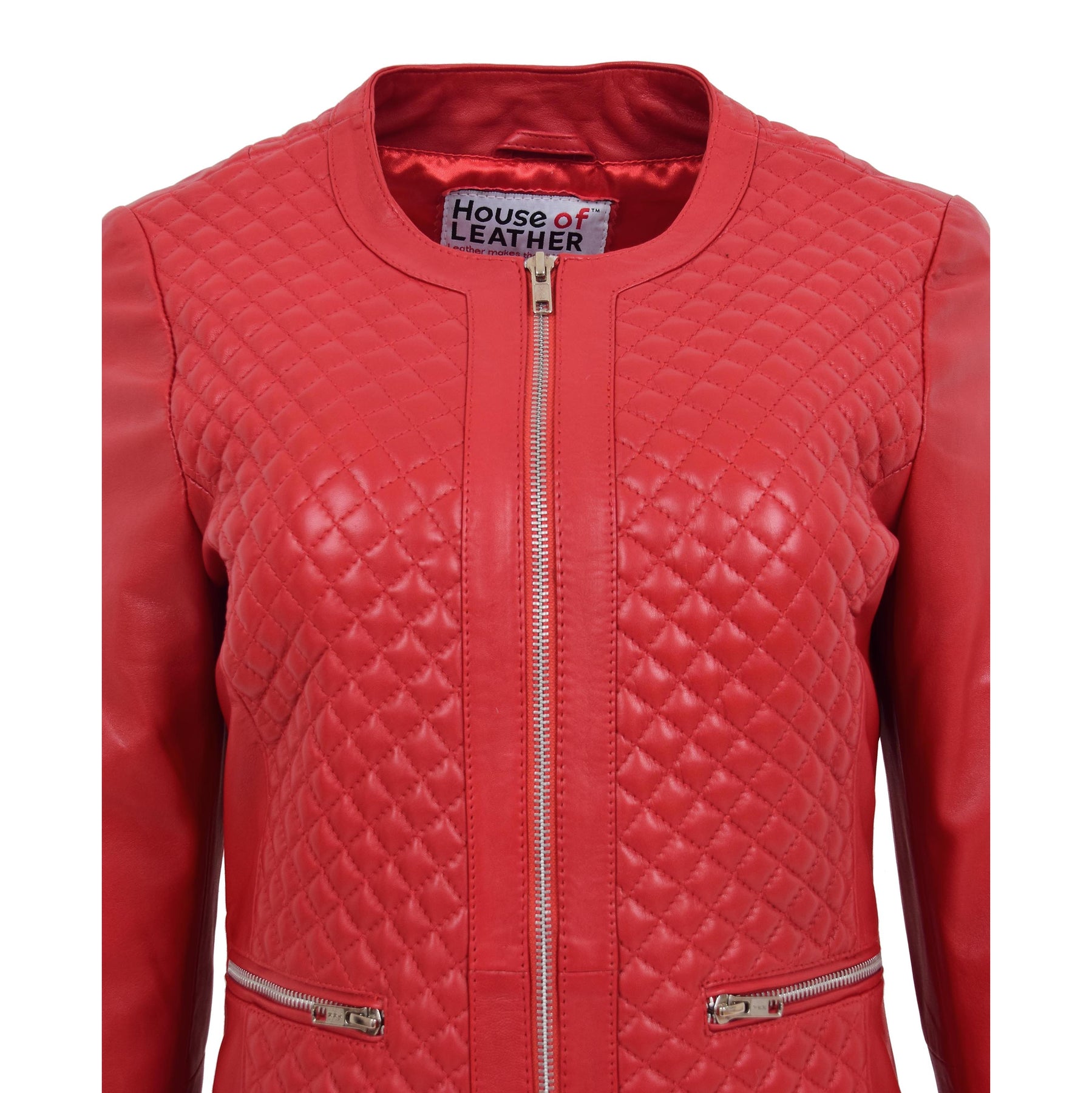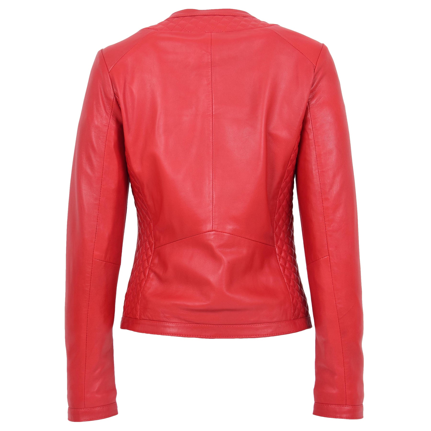 Womens Leather Collarless Jacket with Quilt Design Joan Red 5