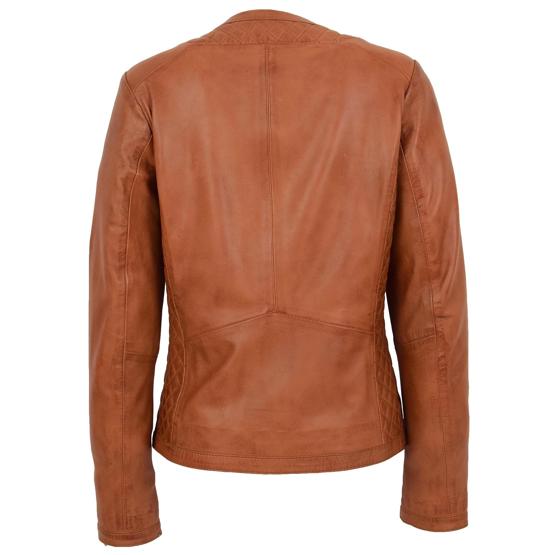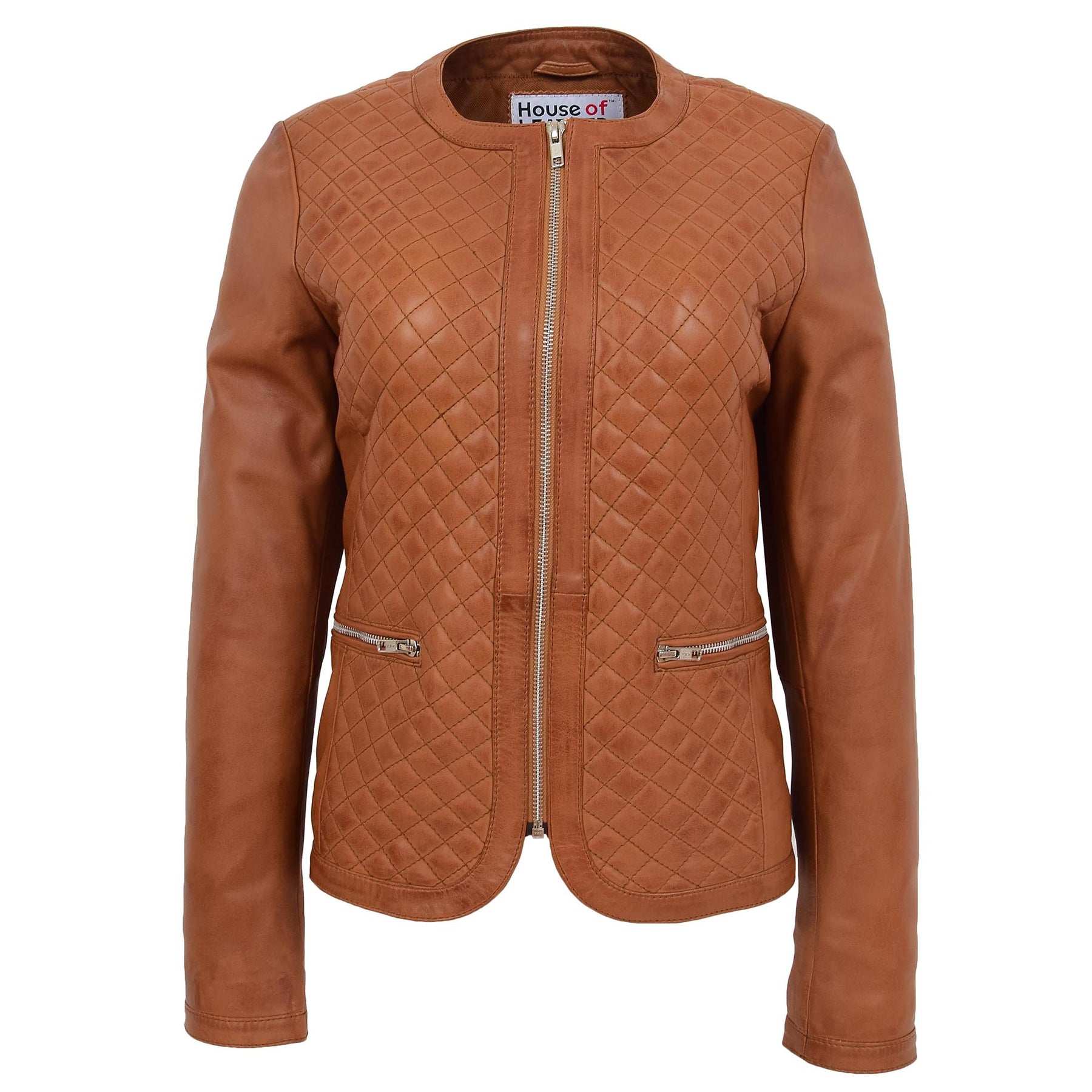 Womens Leather Collarless Jacket with Quilt Design Joan Tan